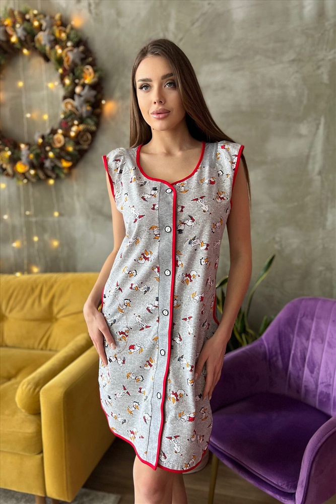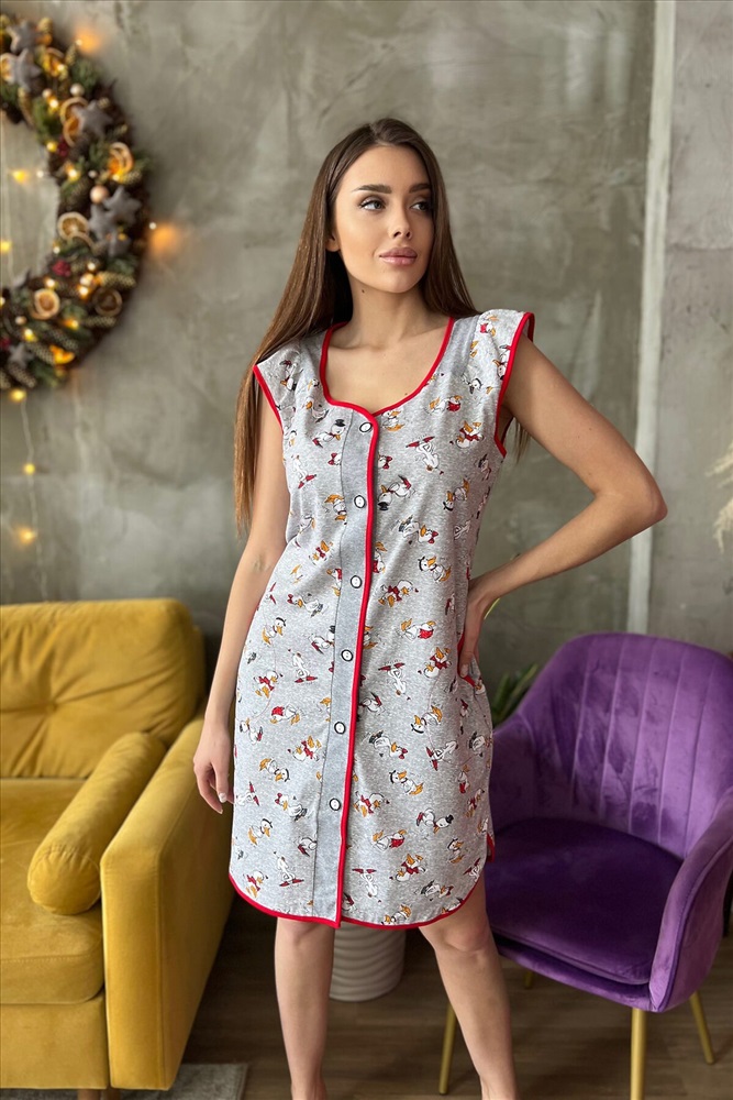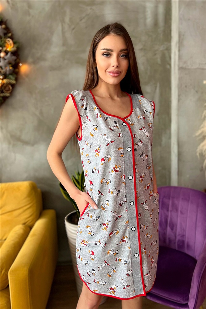 ID товара: 746143 Состав: 100% Хлопок Сезон: Демисезон Длина: До колена Фасон: Полуприлегающий Рукав: Без рукавов Вид застежки: Пуговицы Декоративные элементы: Принт Основная ткань: Хлопок | Кулирка Стиль: Повседневный Страна бренда: Россия Страна производства: Россия Халат без рукавов, на пуговицах. По бокам расположены карманы. Прекрасно подойдет «на каждый день» Комментарии к товару