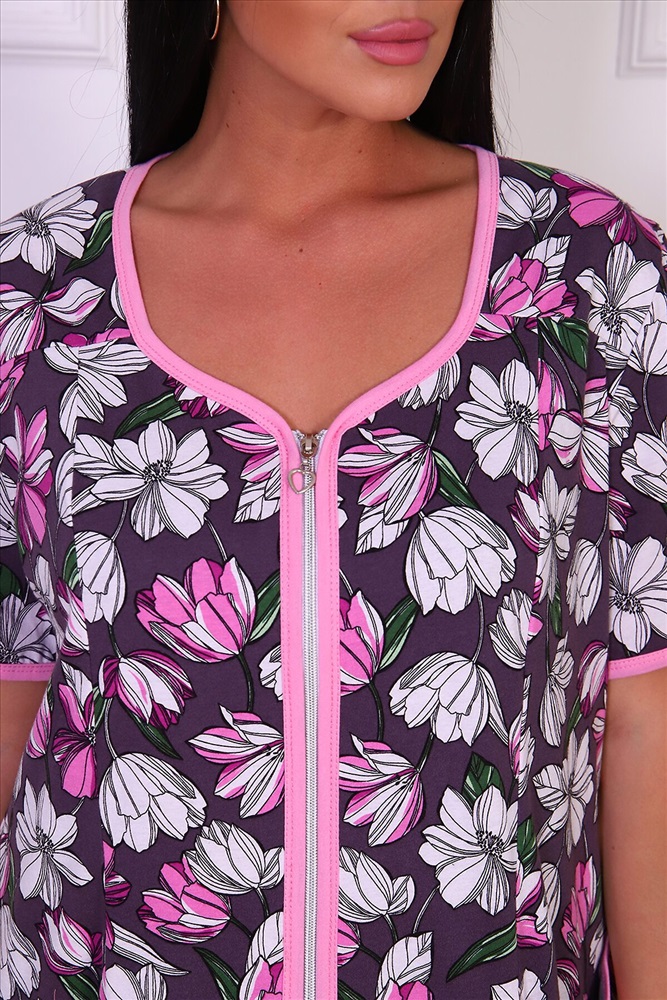 ID товара: 772865 Состав: Хлопок 100% Сезон: Демисезон Длина: Ниже колена Фасон: Полуприлегающий Рукав: Короткие Вид застежки: Молния Декоративные элементы: Карманы накладные Основная ткань: Хлопок | Кулирка Стиль: Повседневный Страна бренда: Россия Страна производства: Россия Халат женский из кулирки на молнии, с накладными карманами и коротким рукавом, на полочке рельефы. Комментарии к товару