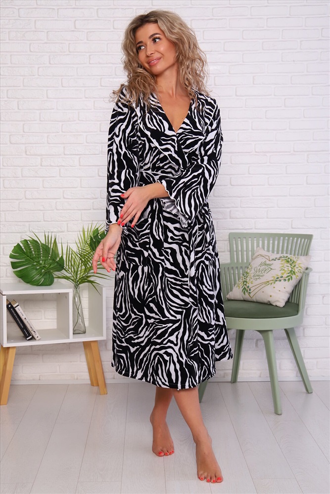 ID товара: 928636 Состав: 80% Велюр, 20% Полиэстер Сезон: Весна/Лето Длина: Ниже колена Фасон: Полуприталенный Рукав: длинные Стиль: Повседневный Вид ткани: Велюр Страна бренда: Россия Страна производства: Россия Халат велюровый на запах. Халат в трендовой расцветке зебра. Халат на запах с поясом, внутри шлевки из велюра. Рукав не полный распашной трапецией, обработанный краевкой. Спереди 2 настрочных кармана. Воротник валан обработан краевкой. Низ халата подгибка. Комментарии к товару