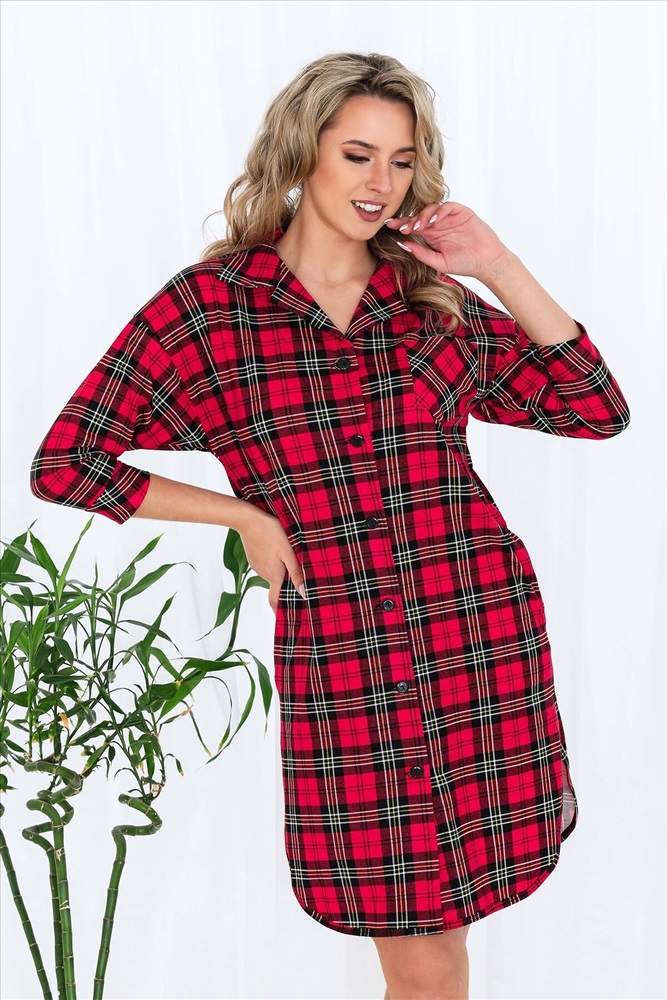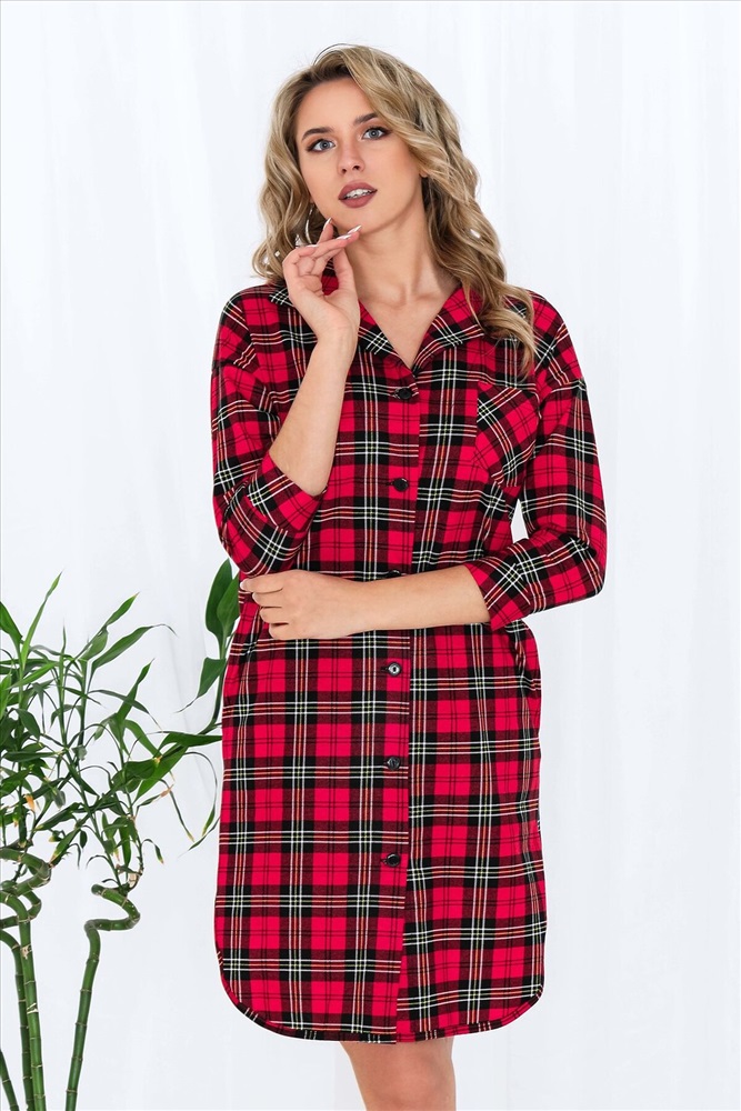 Страна производства: Россия Халат на пуговицах свободного рубашечного кроя. Спущенная пройма. Рукава с манжетами. На груди карман. Низ халата обработан широкой бейкой. Длина рукава в замерах указана от точки основания шеи. Модная в этом сезоне клетка не оставит Вас без внимания, а свободный крой позволит чувствовать себя комфортно и уверенно.