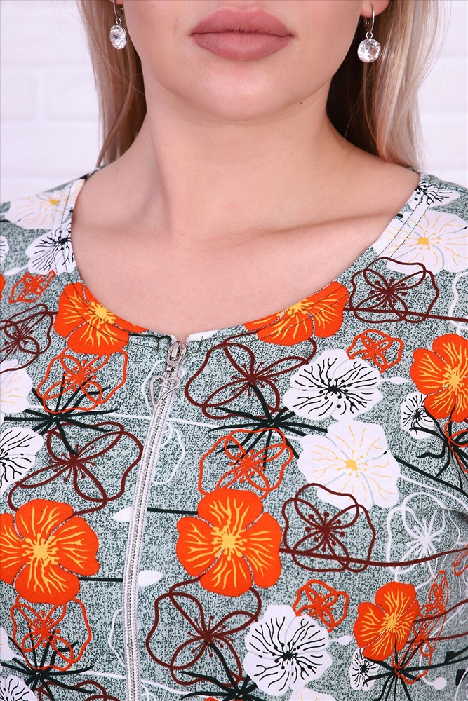 Страна производства: Россия Женский халатик полуприлегающего силуэта, универсальный крой со спущенной проймой не сковывает движения - комфортен при носке. Застежка молния, в боковых швах предусмотрены карманы.