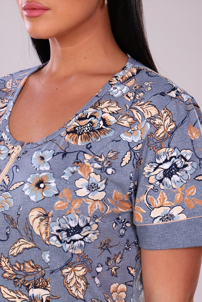 Состав: 100% хлопок Модель: Халат 27100 Тип товара: халат Материал: кулирка | кулирка Бренд: Натали Суслова Длина: средняя длина Карман: накладные Назначение: для дачи | для дома НДС: 5% Отделка: с карманами Рейтинг: Рейтинг 4 и выше Рисунок: цветы Рукав: короткий рукав Сезонность: лето | осень | весна | зима Силуэт: полуприлегающий Стиль: домашний Воротник: без воротника Застежка: молния Халат домашний удлиненный из 100% хлопка, полуприлегающего силуэта. Для лучшей посадки на халате использованы рельефы, от которых до бокового шва расположены накладные карманы. Рукава средней длины, на которых, как и на карманах выполнены элементы из ткани-компаньона с отделочным узким кантом. По низу халата пущены воланы, обработанные краевой машиной. Таблица размеров и веса