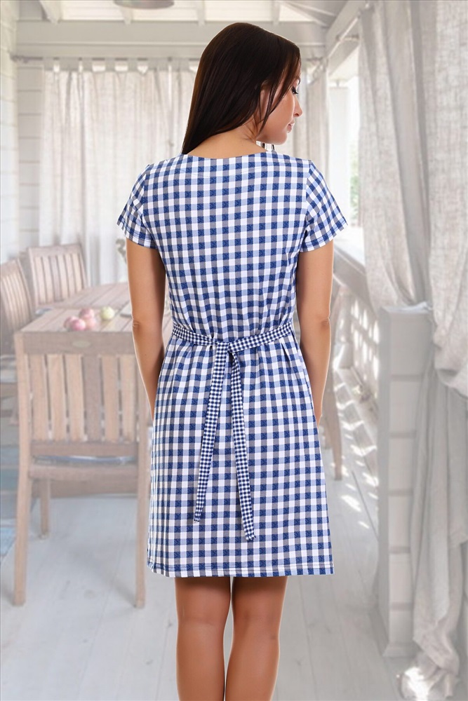ID товара: 883772 Состав: 100% Хлопок Сезон: Весна/Лето Длина: Средняя Фасон: Прямой Рукав: короткие Вид застежки: Пуговицы Основная ткань: Кулирка Стиль: Повседневный Страна бренда: Россия Страна производства: Россия ВНИМАНИЕ!!! Расцветки в ассортименте, внешний вид изделия может отличаться от представленного на фото. Халат женский в клетку, с застежкой на восемь пуговиц и накладными карманами со складками Комментарии к товару