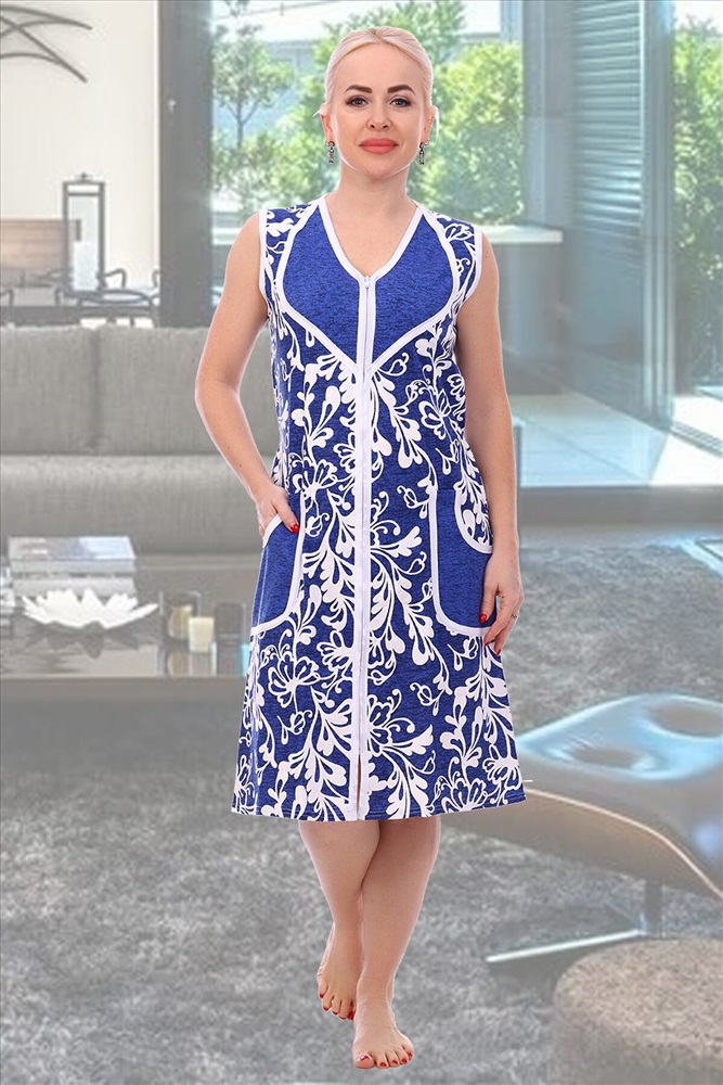 Страна производства: Россия Удобный и практичный халат без рукавов. Застежка на молнию, оригинальный крой полочки. Отлично подходит для лета