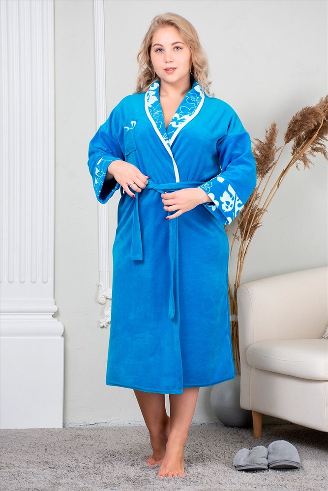 Страна производства: Россия Женский запашной халат с воротником из материала велюр.