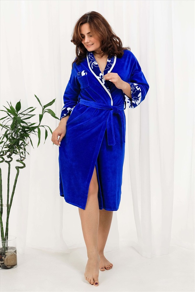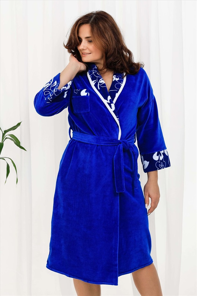 ID товара: 821754 Состав: 80% Хлопок, 20% Полиэстер Сезон: Осень/Зима Длина: Ниже колена Фасон: Полуприлегающий Рукав: 3/4 Вид застежки: С запахом Декоративные элементы: Пояс Основная ткань: Хлопок | Велюр Стиль: Повседневный Страна бренда: Россия Страна производства: Россия Женский запашной халат с воротником из материала велюр. Комментарии к товару