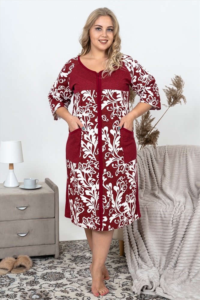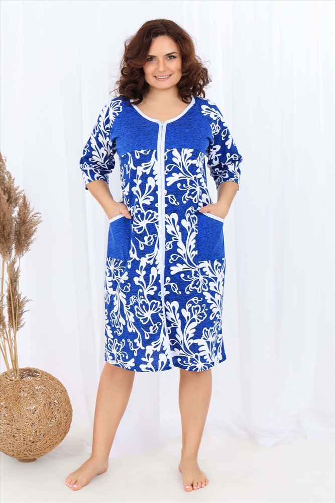 Состав: 100% хлопок Модель: Халат 2850 Тип товара: халат Материал: кулирка | кулирка Бренд: Натали Суслова Длина: средняя длина Карман: накладные Назначение: для дачи | для дома НДС: Без НДС Отделка: с карманами Рейтинг: Рейтинг 4 и выше Рисунок: узоры Рукав: рукав 3/4 Сезонность: лето | осень | весна | зима Силуэт: прямой Стиль: домашний Воротник: без воротника Застежка: молния Халат, который вы искали! Удобная и женственная модель для любительниц классического стиля выполнена из качественного хлопка. Халат домашний средней длины с комфортной посадкой по фигуре. На молнии, с боковыми накладными карманами, рукав 3/4. Приятная цветовая гамма модели подойдет любому цветотипу и вашим близким. Ткань изделия - кулирная гладь 100% хлопок. Таблица размеров и веса