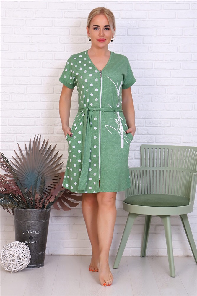 Халат женский с короткими рукавами Летний женский халат на молнии, является самой популярной моделью, обеспечивает удобство во время носки, не сковывает движений. Прямой свободный крой позволяет скрыть недостатки фигуры и ощущать легкость во время домашнего отдыха. Длина халата универсальная, за колено. Изделие выглядит стильно и привлекательно за счет нежной цветовой гаммы.