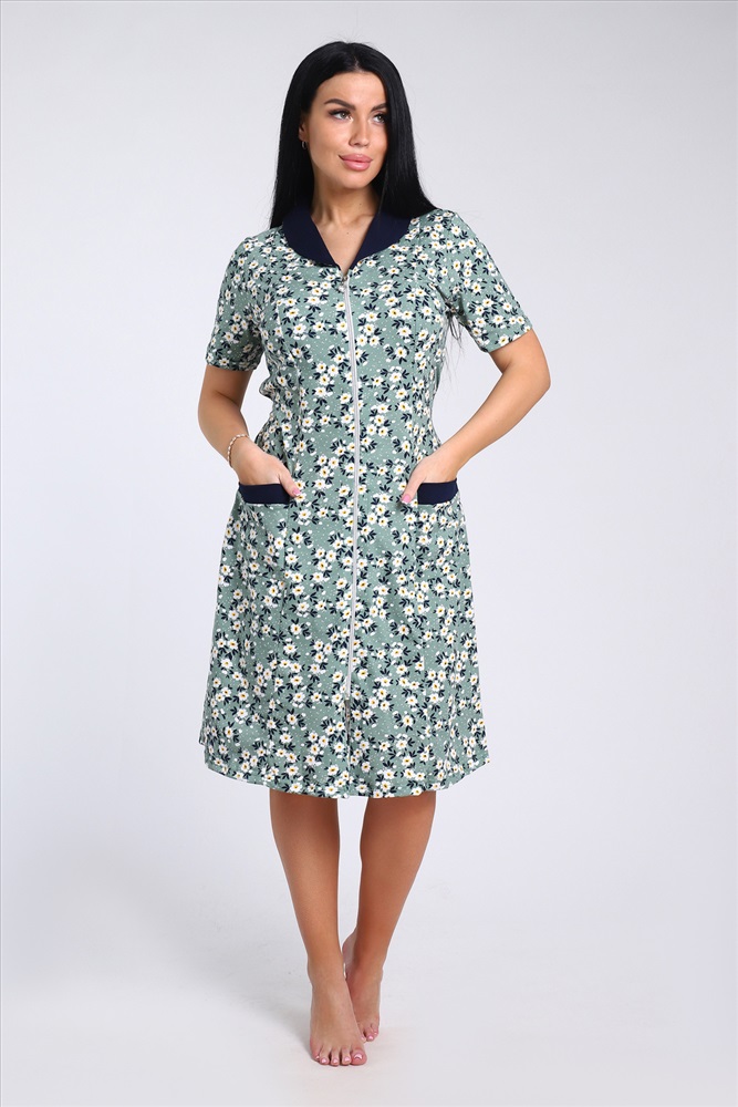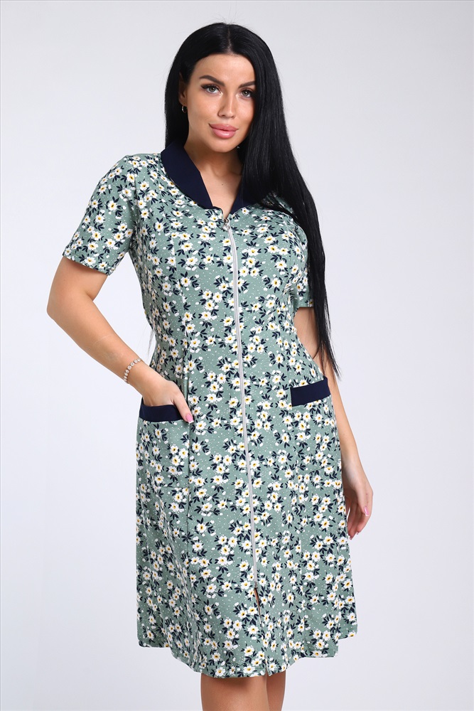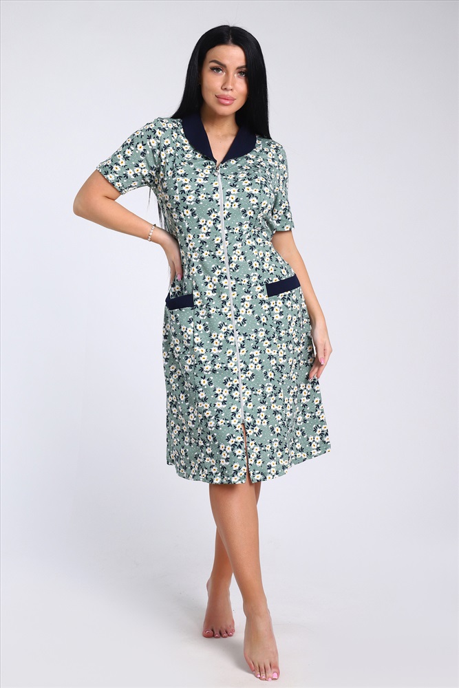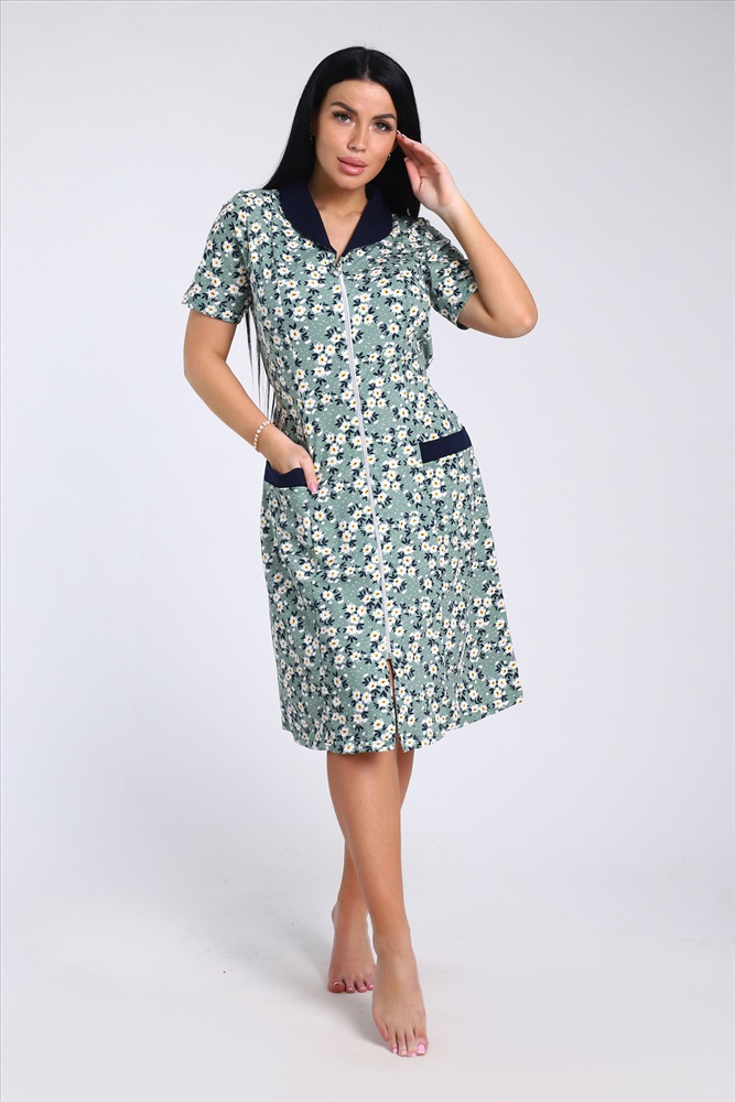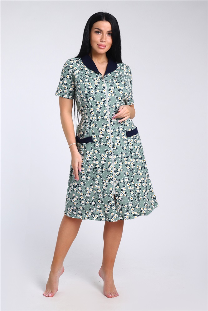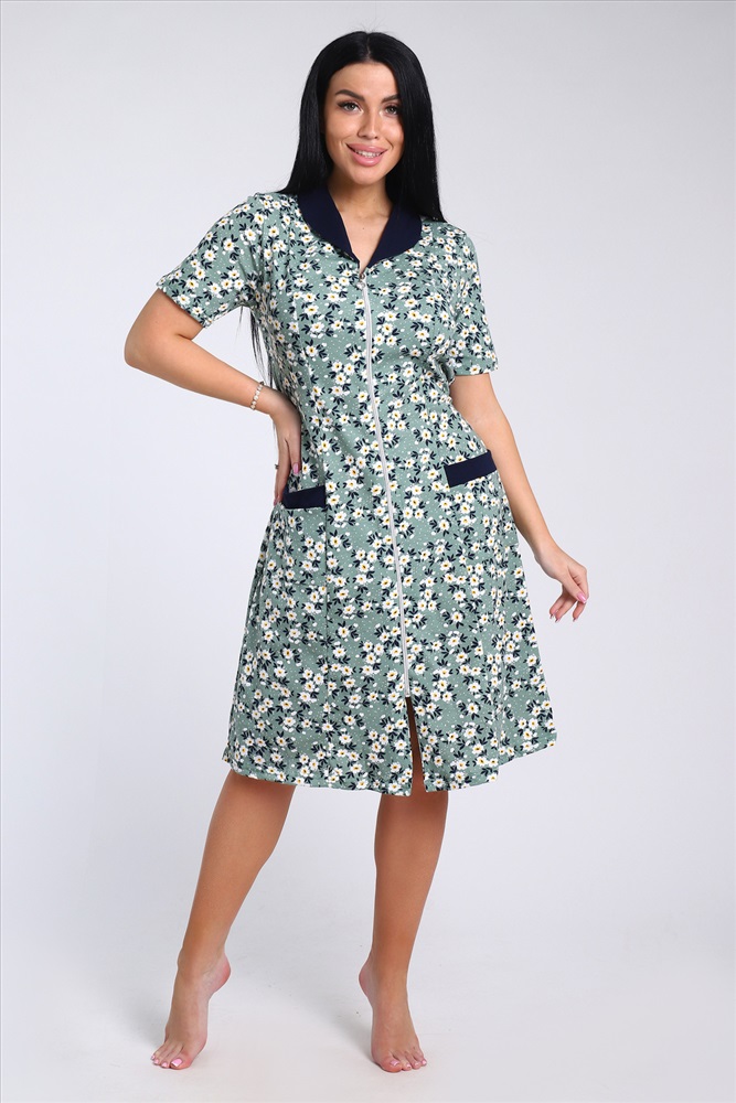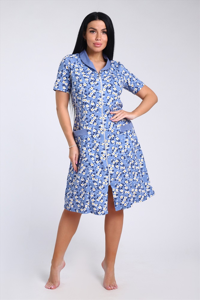 Застежка: молния Халат в нежных оттенках, с цветочным принтом подарит весеннее настроение. Удобный, практичный, комфортный. Короткий рукав, отделка кармана, манжета рукава, карманы, застежка декоративная молния.