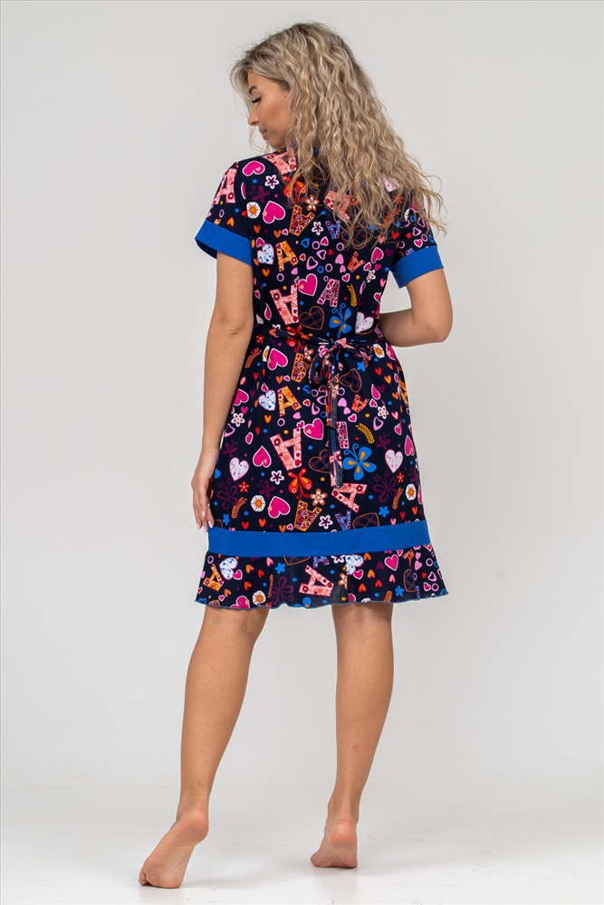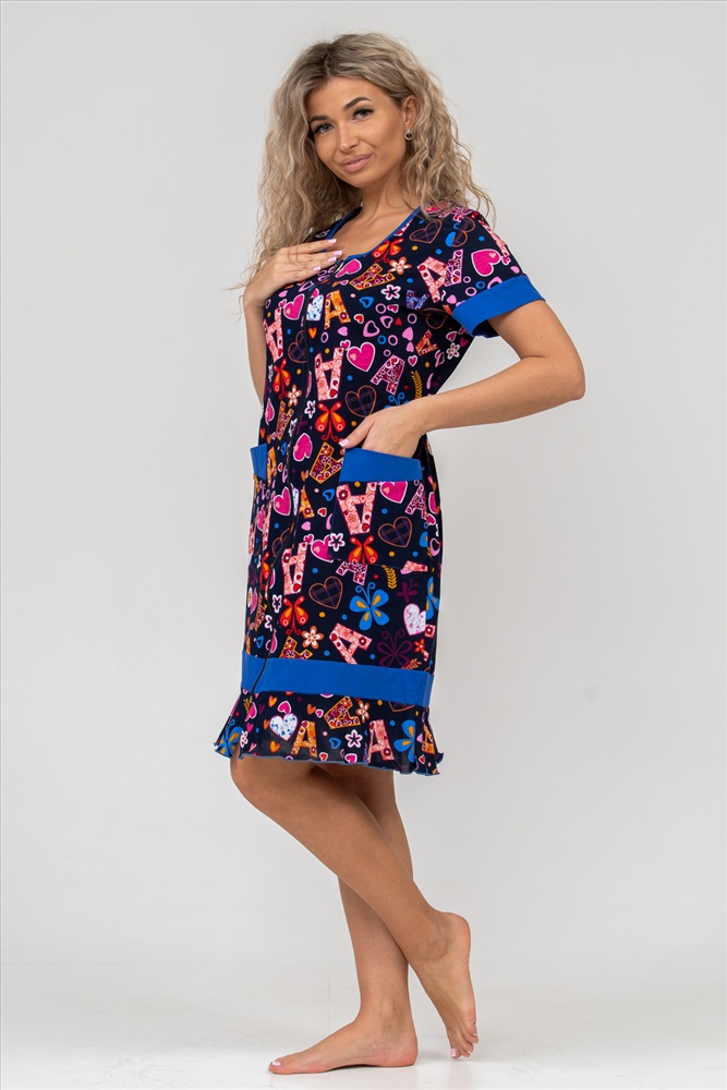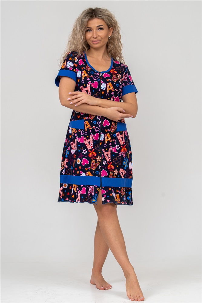 Состав: 100% хлопок Модель: Халат 36640 Тип товара: халат Материал: кулирка | кулирка Бренд: Натали Суслова Длина: средняя длина Карман: накладные Назначение: для дачи | для дома НДС: 22% Отделка: с карманами | с поясом | с воланами Рисунок: цветы Рукав: короткий рукав Сезонность: лето | осень | весна | зима Силуэт: полуприлегающий Стиль: домашний Воротник: без воротника Застежка: молния Женский халат на молнии выполнен из 100% хлопчатобумажной ткани. Модель дополняет яркая отделка по рукавам, карманам и низу изделия. А пояс на линии талии поможет легко смоделировать изящный силуэт и при этом чувствовать себя легко и непринуждённо. Данная модель прекрасно подойдёт для дома, дачи и отдыха, создавая по-настоящему тёплую атмосферу и женственный образ. Рост модели на фото 165см Таблица размеров и веса