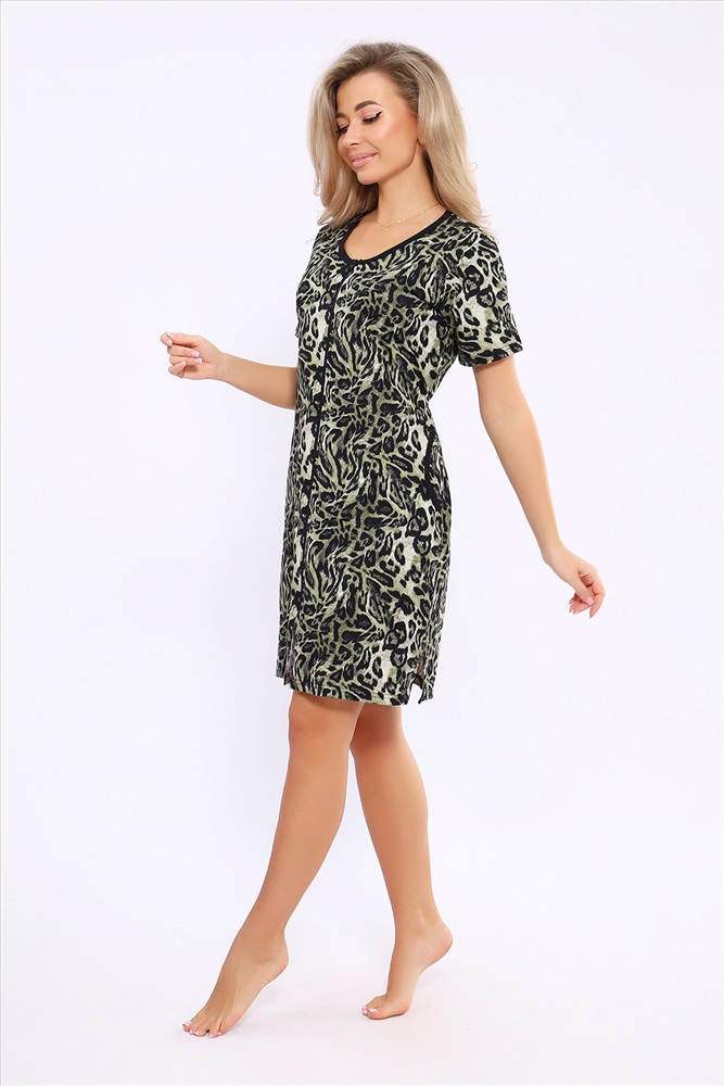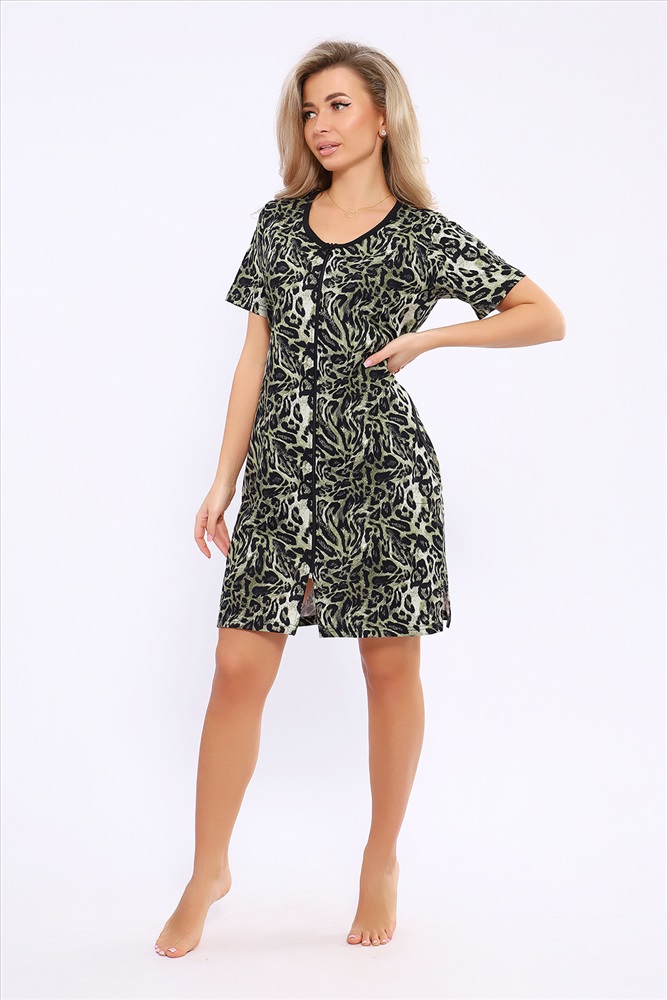 Состав: 100% хлопок Модель: Халат 36865 Тип товара: халат Материал: кулирка | кулирка Бренд: Натали Суслова Карман: боковые Назначение: для дома НДС: 5% Отделка: с карманами Рисунок: анималистичный Рукав: короткий рукав Сезонность: лето | осень | весна | зима Силуэт: полуприлегающий Стиль: домашний Воротник: без воротника Застежка: молния Женский халатик модных расцветок выполнен из 100% хлопчатобумажной ткани, что обеспечивает максимальный комфорт при ношении. Отличается мягкостью и приятной на ощупь текстурой. Материал прекрасно дышит. Носить такой халатик Вы сможете как летом, так и в любой другой сезон. Надёжный замок на молнии сохраняет свои свойства в течении всего времени использования. Женственный вырез и 2 боковых кармана добавляют образу шарм и делают изделие удобным и практичным. А изысканный поясок подчеркнёт вашу талию. Халатик средней длины подойдёт для любого типа фигуры. Отличная модель для дома, для роддома, после родов, для кухонных дел и хозяйственной уборки, для дачи. И конечно идеально после душа, сауны, бани и ванной. А так же будет замечательным подарком на любой праздник: 14 февраля, день рождения, 8 марта. Рекомендуется стирать в деликатном режиме 30 С. Это поможет избежать деформации и сохранить яркость цвета. Таблица размеров и веса