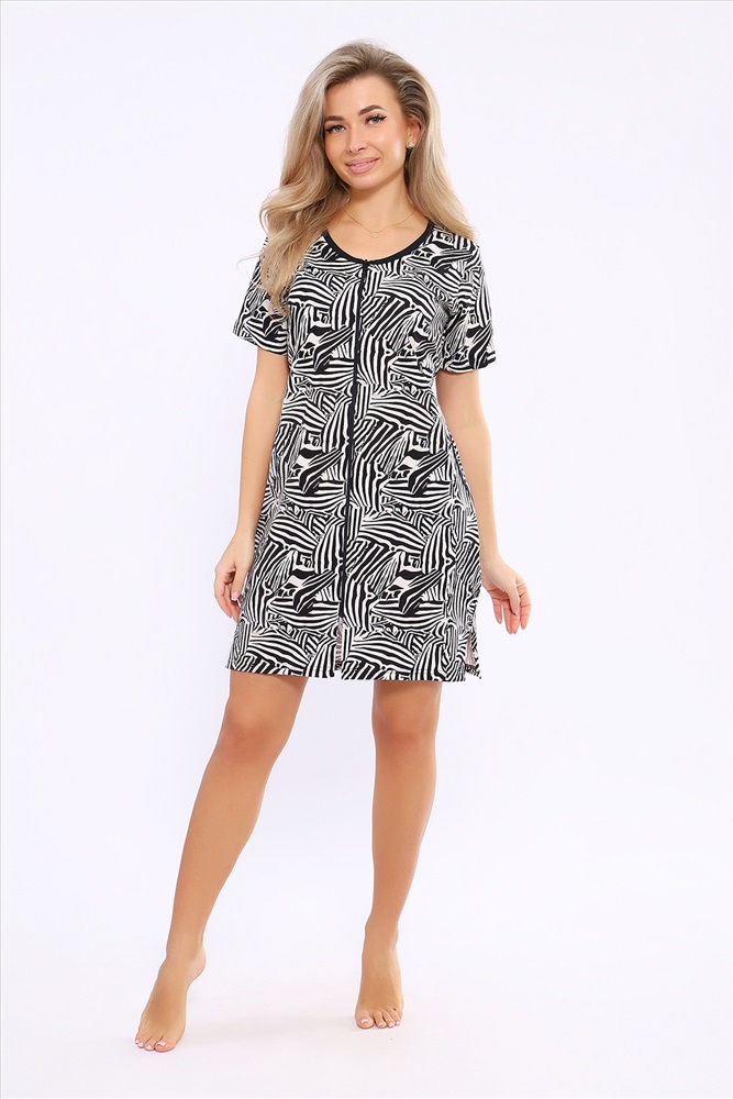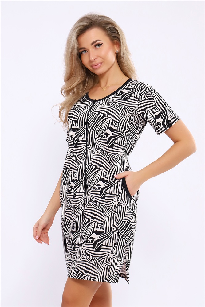 Воротник: без воротника Женский халатик модной расцветки выполнен из 100% хлопчатобумажной ткани, что обеспечивает максимальный комфорт при ношении. Отличается мягкостью и приятной на ощупь текстурой. Материал прекрасно дышит. Носить такой халатик Вы сможете как летом, так и в любой другой сезон. Надёжный замок на молнии сохраняет свои свойства в течении всего времени использования. Женственный вырез и 2 боковых кармана добавляют образу шарм и делают изделие удобным и практичным. А изысканный поясок подчеркнёт вашу талию. Халатик средней длины подойдёт для любого типа фигуры. Отличная модель для дома, для роддома, после родов, для кухонных дел и хозяйственной уборки, для дачи. И конечно идеально после душа, сауны, бани и ванной. А так же будет замечательным подарком на любой праздник: 14 февраля, день рождения, 8 марта. Рекомендуется стирать в деликатном режиме 30 С. Это поможет избежать деформации и сохранить яркость цвета.