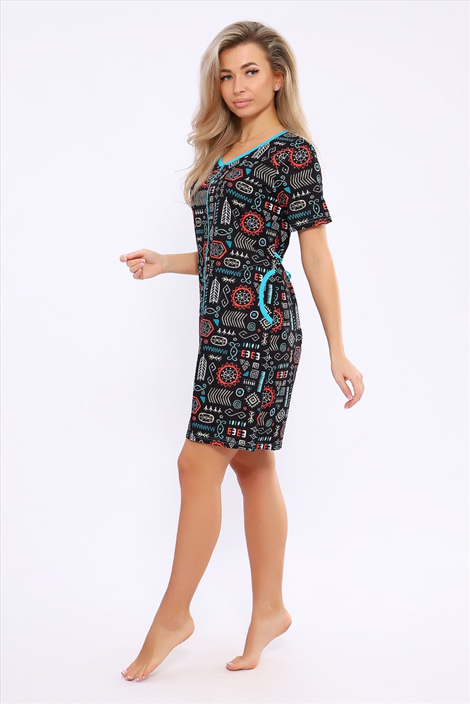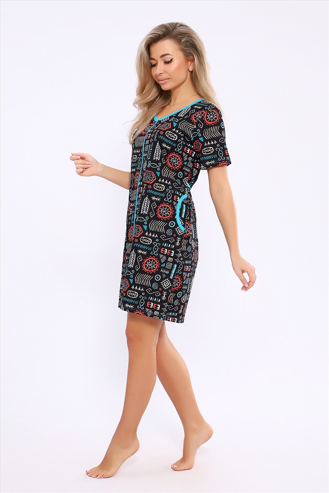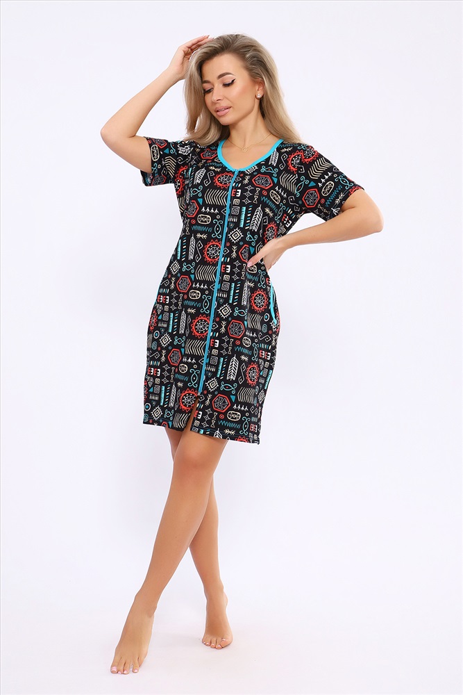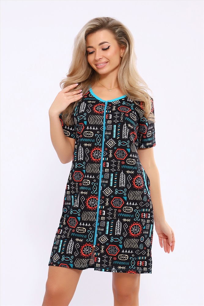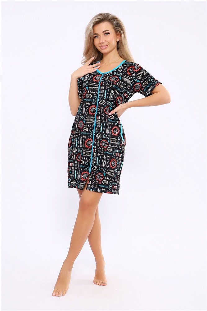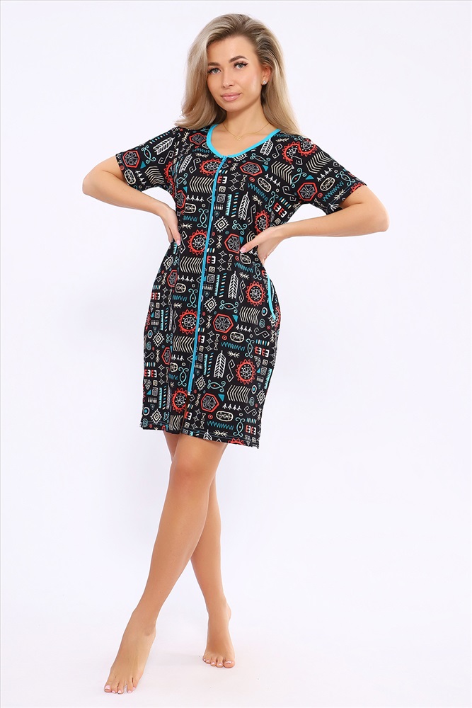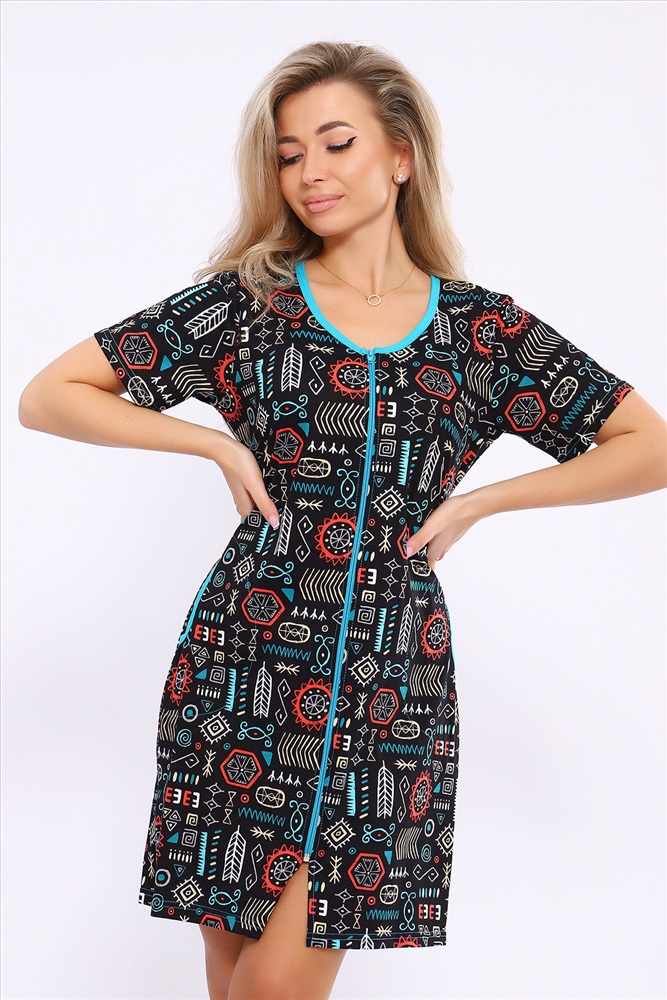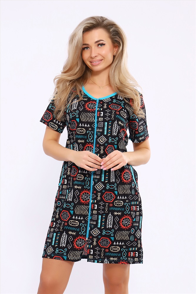 Состав: 100% хлопок Модель: Халат 36867 Тип товара: халат Материал: кулирка | кулирка Бренд: Натали Суслова Карман: боковые Назначение: для дома НДС: 5% Отделка: с карманами Рисунок: узоры Рукав: короткий рукав Сезонность: лето | осень | весна | зима Силуэт: полуприлегающий | свободный Стиль: домашний Воротник: без воротника Застежка: молния Женский халатик модных расцветок выполнен из 100% хлопчатобумажной ткани, что обеспечивает максимальный комфорт при ношении. Отличается мягкостью и приятной на ощупь текстурой. Материал прекрасно дышит. Носить такой халатик Вы сможете как летом, так и в любой другой сезон. Надёжный замок на молнии сохраняет свои свойства в течении всего времени использования. Женственный вырез и 2 боковых кармана добавляют образу шарм и делают изделие удобным и практичным. А изысканный поясок подчеркнёт вашу талию. Халатик средней длины подойдёт для любого типа фигуры. Отличная модель для дома, для роддома, после родов, для кухонных дел и хозяйственной уборки, для дачи. И конечно идеально после душа, сауны, бани и ванной. А так же будет замечательным подарком на любой праздник: 14 февраля, день рождения, 8 марта. Рекомендуется стирать в деликатном режиме 30 С. Это поможет избежать деформации и сохранить яркость цвета. Таблица размеров и веса