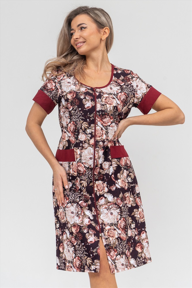 Застежка: молния Женский халатик на молнии самая распространенная и универсальная одежда для домашнего отдыха и хозяйственных хлопот. После трудного рабочего дня, приходя домой, первым делом хочется переодеться. И данная модель это идеальный вариант среди представительниц прекрасной половины человечества. Модель выполнена из 100% хлопчатобумажной ткани. Халат так же дополняет яркая отделка по рукавам и карманам. А пояс на линии талии поможет легко смоделировать женственный силуэт и при этом Вы будете чувствовать себя легко и непринуждённо. Данная модель прекрасно подойдёт для дома, дачи и отдыха, создавая по-настоящему яркий образ и хорошее настроение! Рост модели на фото 165см.