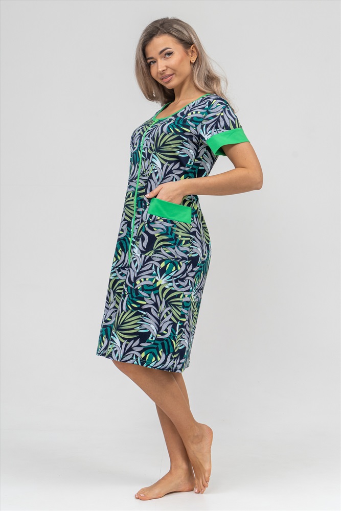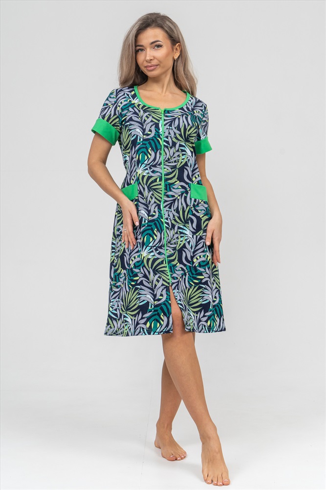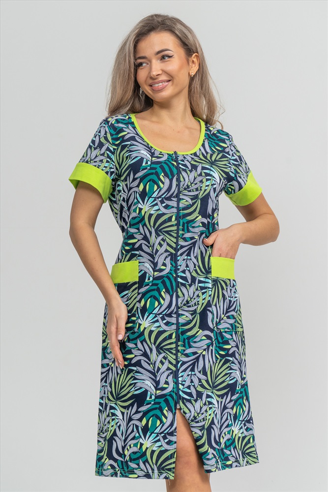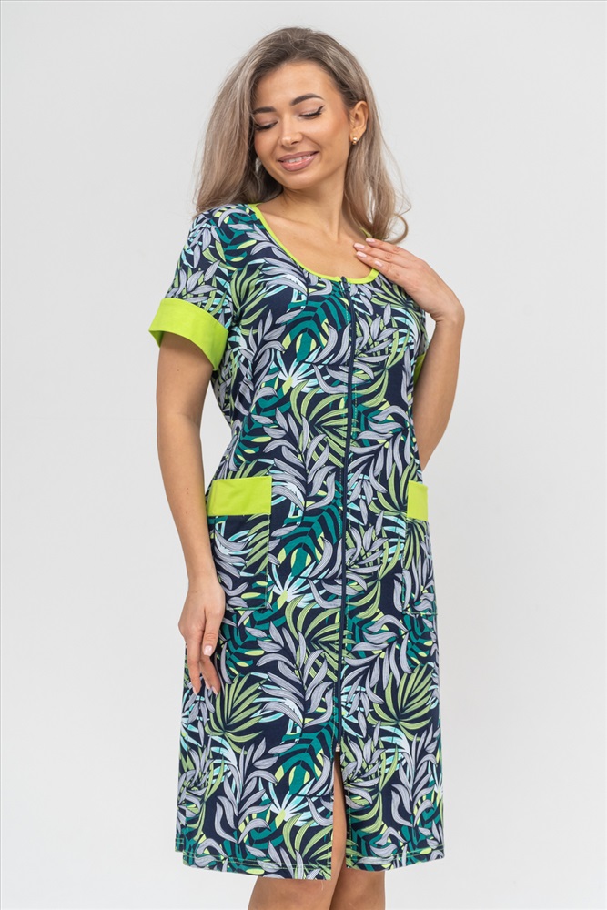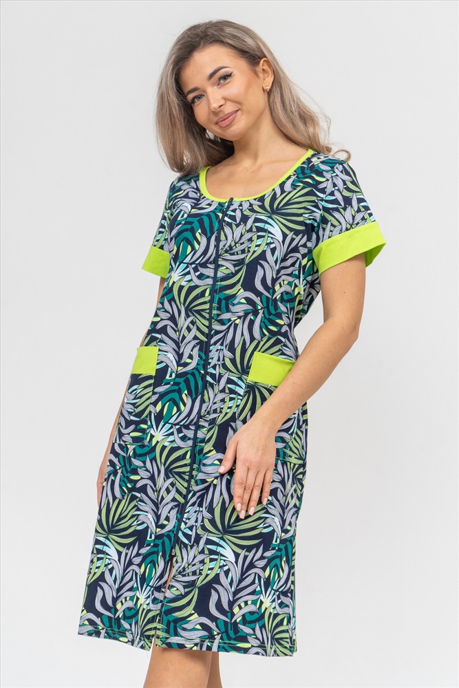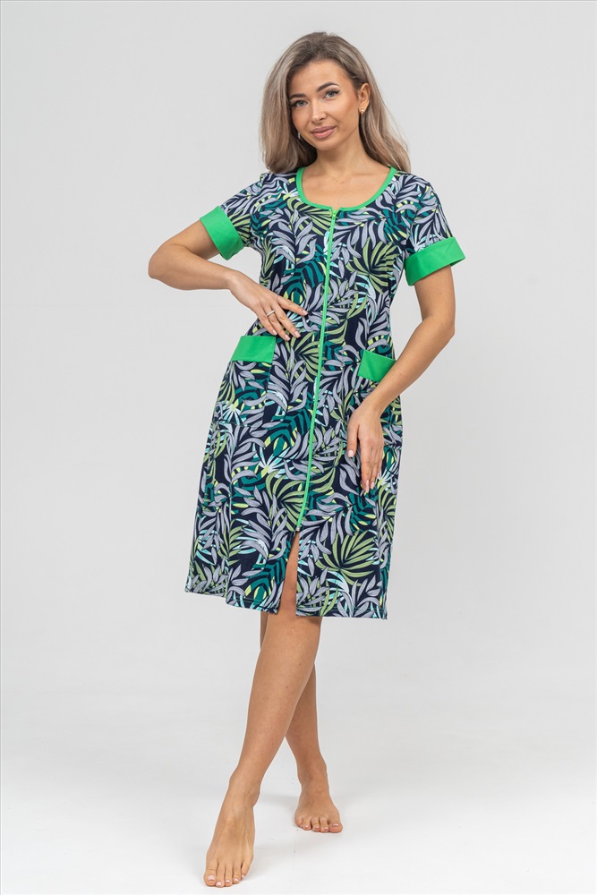 Застежка: молния Женский халатик на молнии самая распространенная и универсальная одежда для домашнего отдыха и хозяйственных хлопот. После трудного рабочего дня, приходя домой, первым делом хочется переодеться. И данная модель это идеальный вариант среди представительниц прекрасной половины человечества. Модель выполнена из 100% хлопчатобумажной ткани. Халат так же дополняет яркая отделка по рукавам и карманам. А пояс на линии талии поможет легко смоделировать женственный силуэт и при этом Вы будете чувствовать себя легко и непринуждённо. Данная модель прекрасно подойдёт для дома, дачи и отдыха, создавая по-настоящему яркий образ и хорошее настроение! Рост модели на фото 165см.