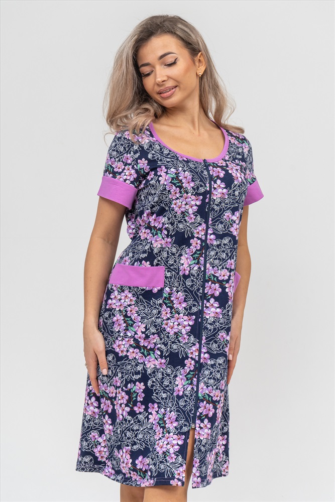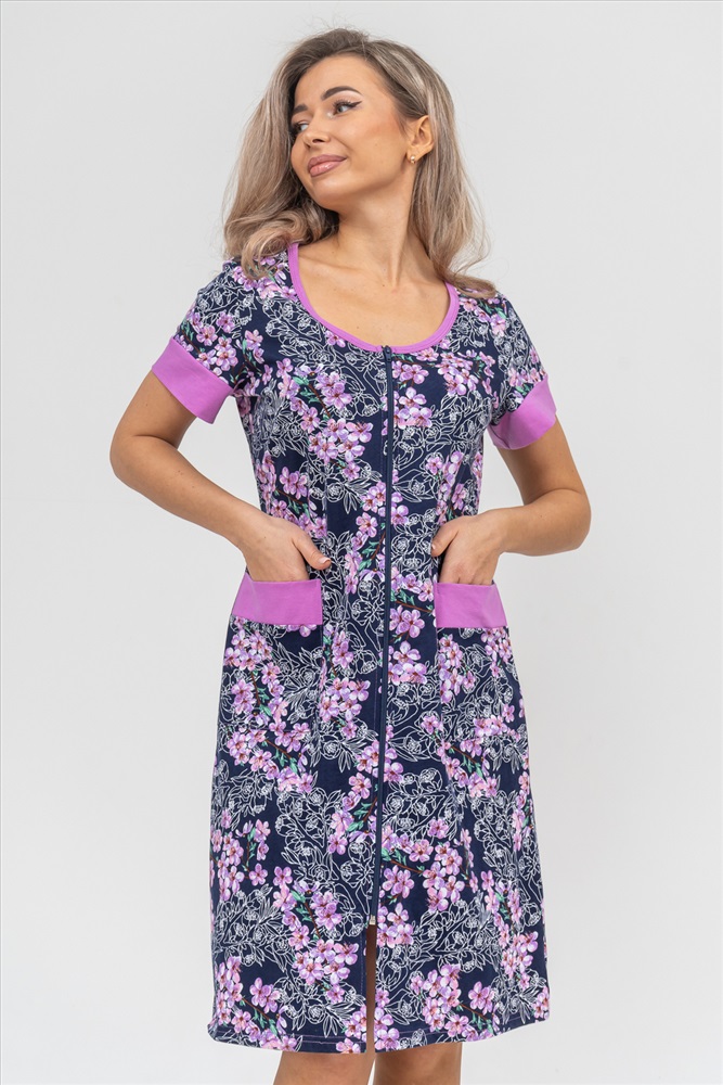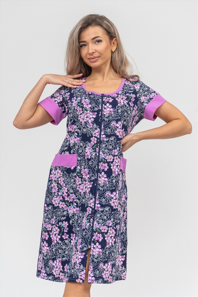 Застежка: молния Женский халатик на молнии самая распространенная и универсальная одежда для домашнего отдыха и хозяйственных хлопот. После трудного рабочего дня, приходя домой, первым делом хочется переодеться. И данная модель это идеальный вариант среди представительниц прекрасной половины человечества. Модель выполнена из 100% хлопчатобумажной ткани. Халат так же дополняет яркая отделка по рукавам и карманам. А пояс на линии талии поможет легко смоделировать женственный силуэт и при этом Вы будете чувствовать себя легко и непринуждённо. Данная модель прекрасно подойдёт для дома, дачи и отдыха, создавая по-настоящему яркий образ и хорошее настроение! Рост модели на фото 165см.