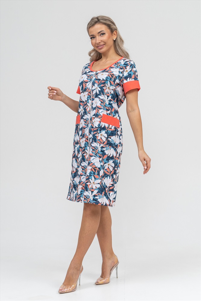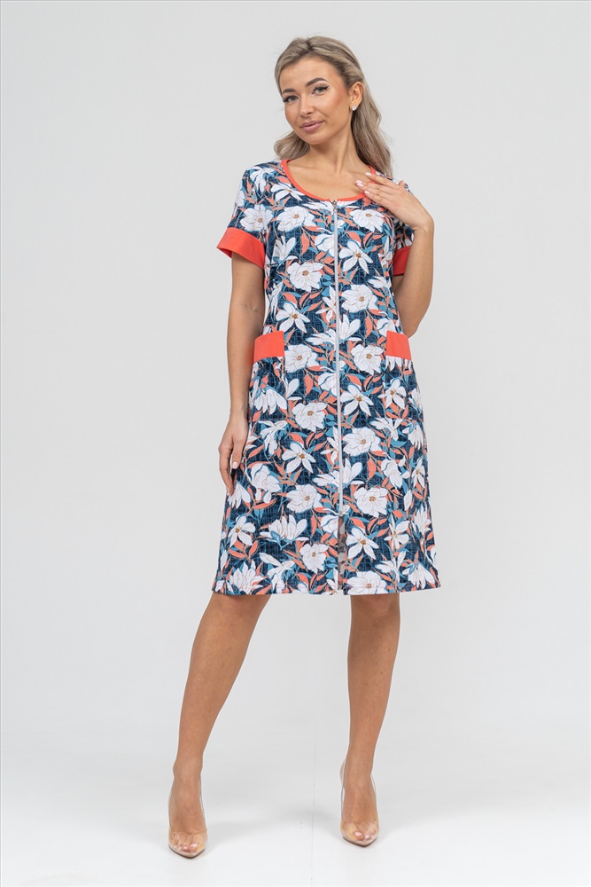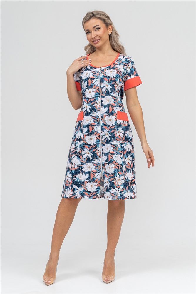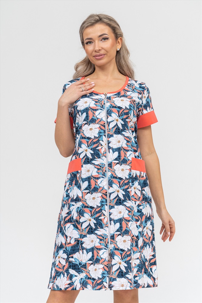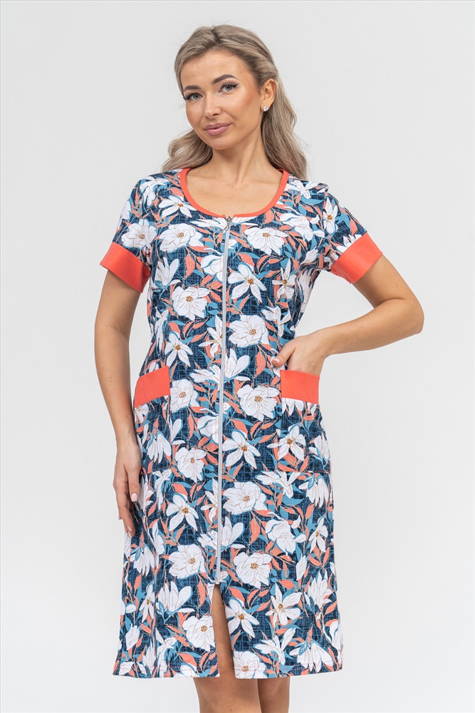 Состав: 100% хлопок Модель: Халат 36911 Тип товара: халат Материал: кулирка | кулирка Бренд: Натали Суслова Карман: накладные Назначение: для дома НДС: 5% Отделка: с карманами | с манжетами Рисунок: цветы Рукав: короткий рукав Сезонность: лето | осень | весна | зима Силуэт: полуприлегающий | свободный Стиль: домашний Воротник: без воротника Застежка: молния Женский халатик на молнии самая распространенная и универсальная одежда для домашнего отдыха и хозяйственных хлопот. После трудного рабочего дня, приходя домой, первым делом хочется переодеться. И данная модель это идеальный вариант среди представительниц прекрасной половины человечества. Модель выполнена из 100% хлопчатобумажной ткани. Халат так же дополняет яркая отделка по рукавам и карманам. А пояс на линии талии поможет легко смоделировать женственный силуэт и при этом Вы будете чувствовать себя легко и непринуждённо. Данная модель прекрасно подойдёт для дома, дачи и отдыха, создавая по-настоящему яркий образ и хорошее настроение! Таблица размеров и веса