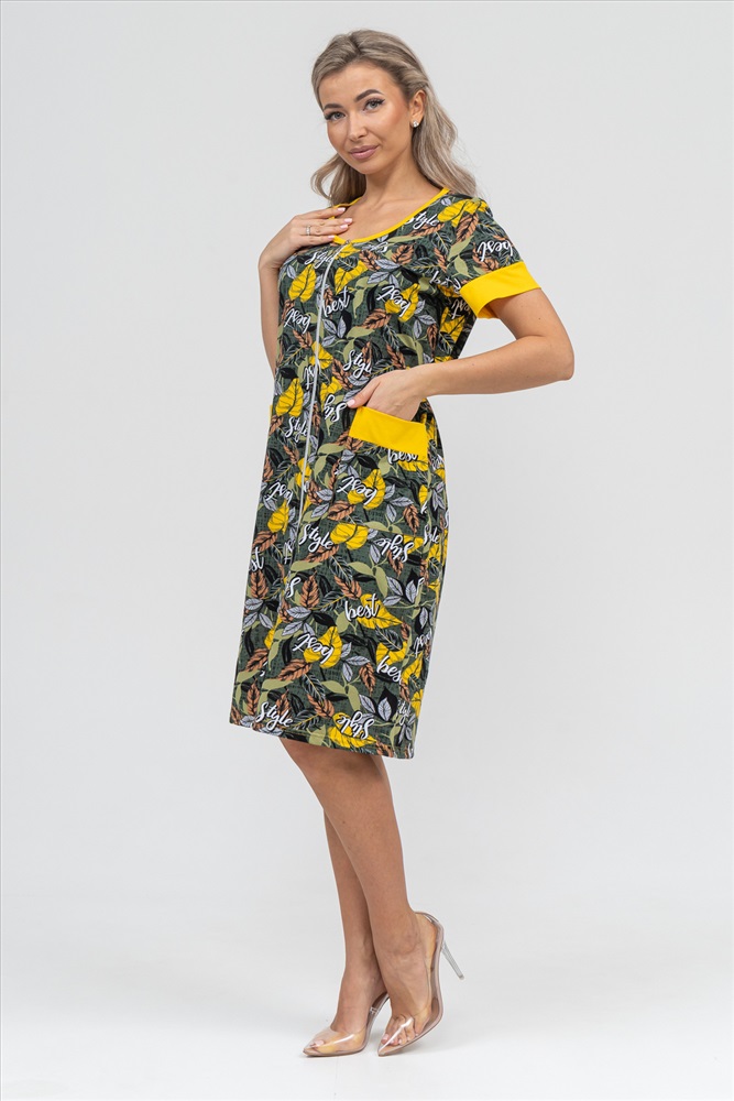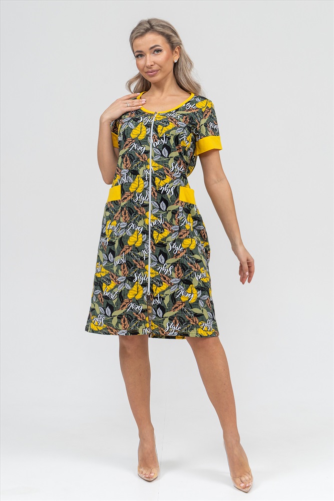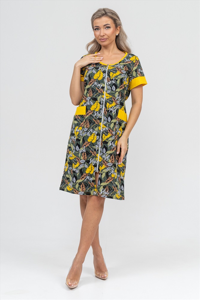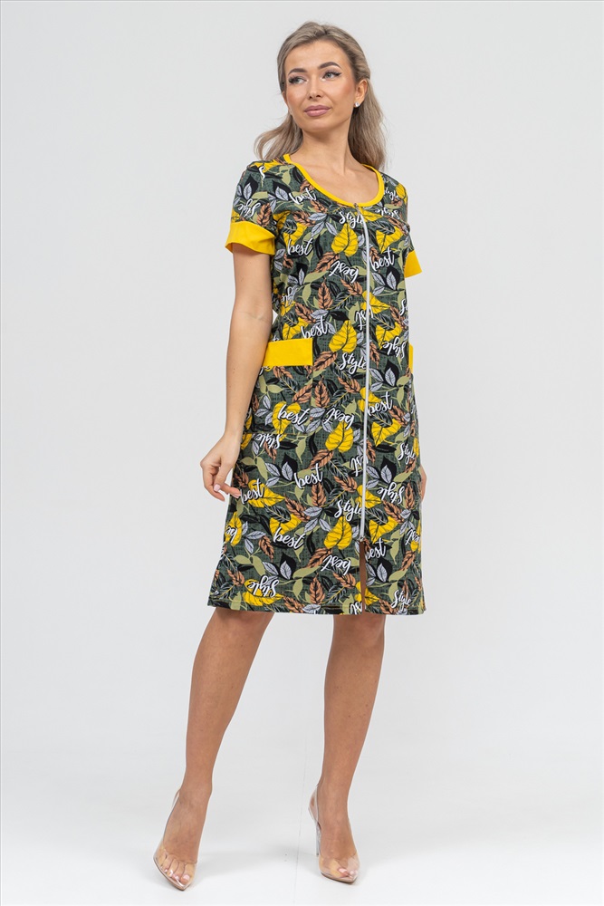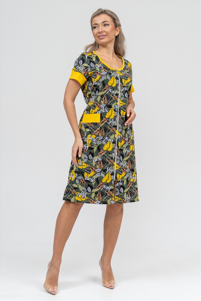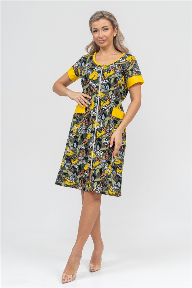 Застежка: молния Женский халатик на молнии самая распространенная и универсальная одежда для домашнего отдыха и хозяйственных хлопот. После трудного рабочего дня, приходя домой, первым делом хочется переодеться. И данная модель это идеальный вариант среди представительниц прекрасной половины человечества. Модель выполнена из 100% хлопчатобумажной ткани. Халат так же дополняет яркая отделка по рукавам и карманам. А пояс на линии талии поможет легко смоделировать женственный силуэт и при этом Вы будете чувствовать себя легко и непринуждённо. Данная модель прекрасно подойдёт для дома, дачи и отдыха, создавая по-настоящему яркий образ и хорошее настроение!