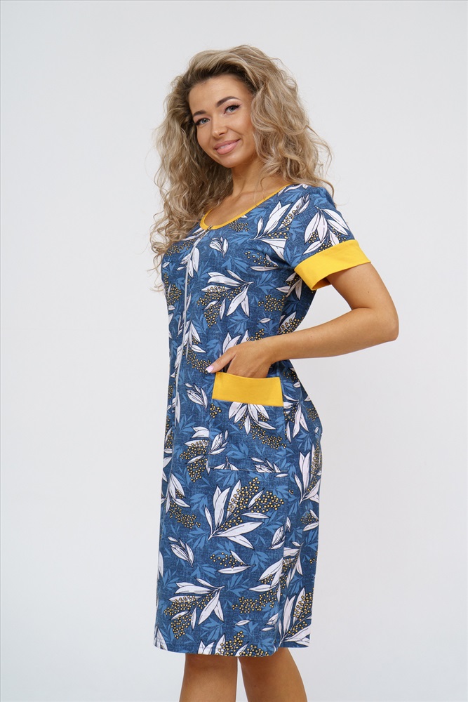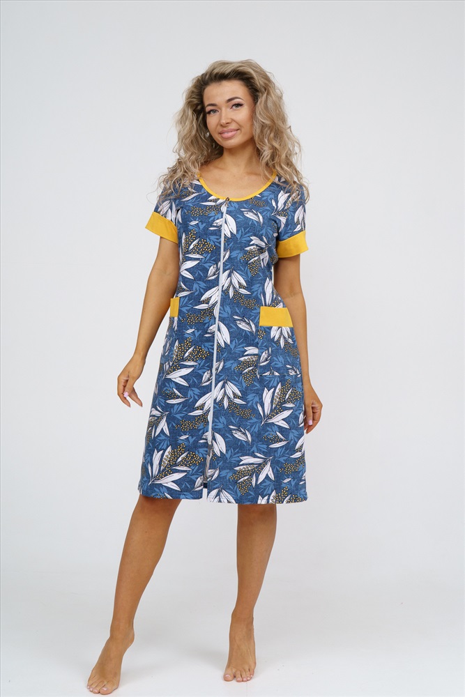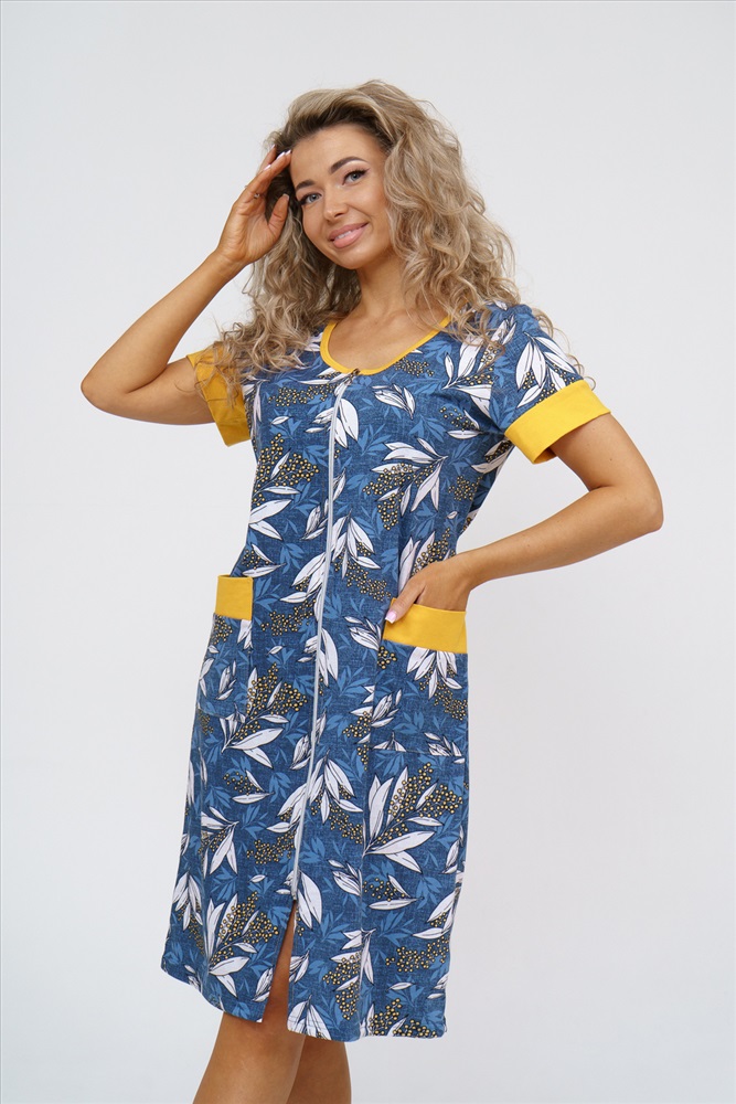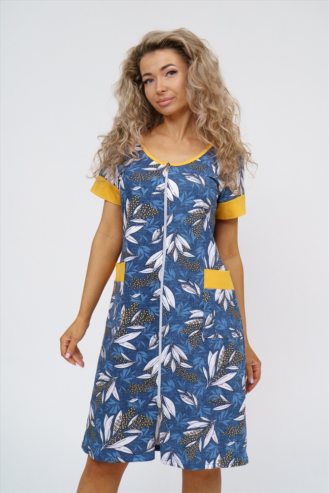 Застежка: молния Женский халатик на молнии самая распространенная и универсальная одежда для домашнего отдыха и хозяйственных хлопот. После трудного рабочего дня, приходя домой, первым делом хочется переодеться. И данная модель это идеальный вариант среди представительниц прекрасной половины человечества. Модель выполнена из 100% хлопчатобумажной ткани. Халат так же дополняет яркая отделка по рукавам и карманам. А пояс на линии талии поможет легко смоделировать женственный силуэт и при этом Вы будете чувствовать себя легко и непринуждённо. Данная модель прекрасно подойдёт для дома, дачи и отдыха, создавая по-настоящему яркий образ и хорошее настроение!