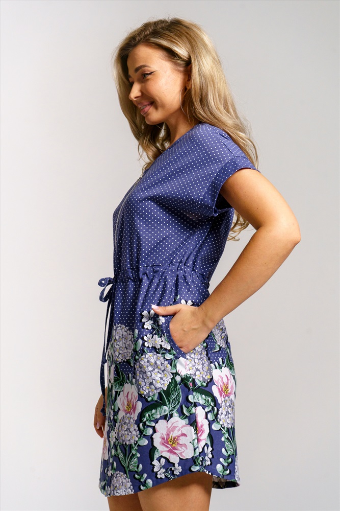 Состав: 100% хлопок Модель: Халат 36969 Тип товара: халат Материал: кулирка | кулирка Бренд: Натали Суслова Длина: короткий Карман: боковые Назначение: для дома НДС: 5% Отделка: с карманами | со шнурком Рисунок: горошек | цветы Рукав: короткий рукав Сезонность: лето | осень | весна | зима Силуэт: приталенный | свободный Стиль: домашний Воротник: без воротника Застежка: молния Женский трикотажный халат на молнии без сомнения станет самой желанной и любимой вещью в гардеробе любой дамы. Халатик укороченный, на кулисе со шнурком, с удобными карманами и молнией. Выглядит стильно и современно. А дизайн ткани в виде купона, подчеркнёт вашу индивидуальность. Халатик такого плана подходит для фигур разного типа. Легкий и мягкий, качественный, дышащий, сшит из высококачественного трикотажа, подарит вам абсолютную непринужденность и легкость, простор в движении, идеально подойдет для беременных и кормящих и будет хорошим сопровождением в роддом и не вызовет раздражения, так как создан из натуральной ткани. Благодаря этому может стать прекрасным подарком для, мамы, подруги, бабушки, сестры или коллеги на любой праздник. Отлично сядет на женщин больших размеров. Данная модель будет кстати для отдыха на даче и даже поездки к морю. Домашняя одежда российского производства, имеет комфортную посадку, не линяет, не дает усадку после стирки и долго сохраняет первоначальный внешний вид. Халатик подчеркнет Ваш стиль и добавит молодежных нот в ваш образ, а затягивающийся пояс на талии придаст женственности и изящества вашему луку . Стирайте изделия из хлопка на бережном режиме с температурой не выше 30С, чтобы сохранить цвет, форму и фактуру материала. Приобретая наши изделия, радуйте себя и своих близких. Ориентируясь по таблице замеров, обратите внимание, что замеры длины рукава проводились от точки основания шеи. Таблица размеров и веса