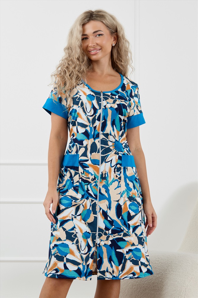 Состав: 100% хлопок Модель: Халат 36977 Тип товара: халат Материал: кулирка | кулирка Бренд: Натали Суслова Карман: накладные Назначение: для дома НДС: 5% Отделка: с карманами Рисунок: геометрия | цветы Рукав: короткий рукав Сезонность: лето | осень | весна | зима Силуэт: свободный Стиль: домашний Воротник: без воротника Застежка: молния Женский халатик на молнии самая распространенная и универсальная одежда для домашнего отдыха и хозяйственных хлопот. После трудного рабочего дня, приходя домой, первым делом хочется переодеться. И данная модель это идеальный вариант среди представительниц прекрасной половины человечества. Модель выполнена из 100% хлопчатобумажной ткани. Халат так же дополняет яркая отделка по рукавам и карманам. А пояс на линии талии поможет легко смоделировать женственный силуэт и при этом Вы будете чувствовать себя легко и непринуждённо. Данная модель прекрасно подойдёт для дома, дачи и отдыха, создавая по-настоящему яркий образ и хорошее настроение! Рост модели на фото 165см. Таблица размеров и веса