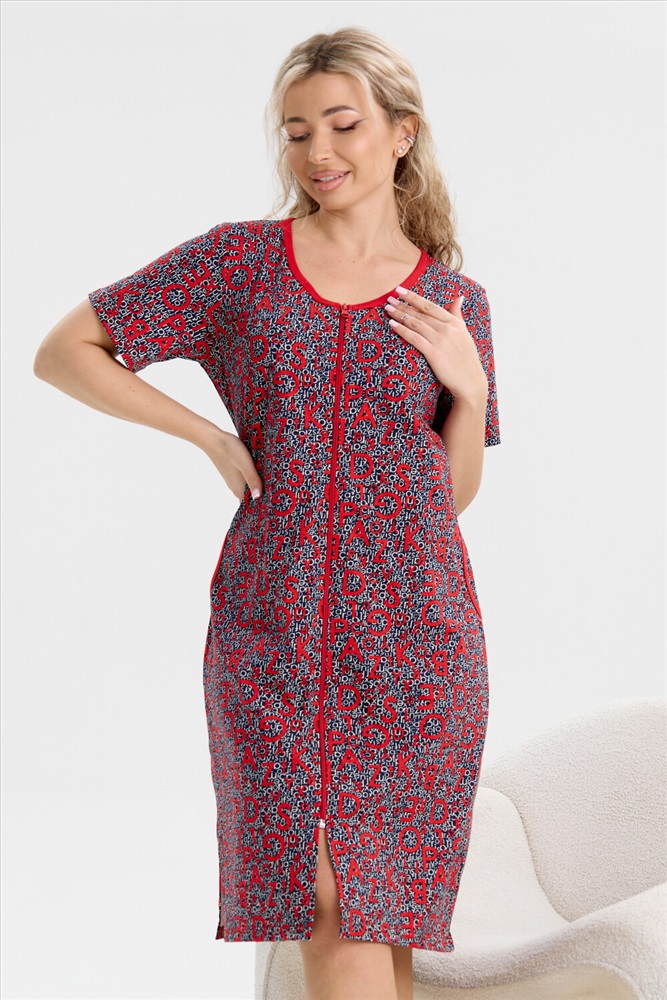 Состав: 100% хлопок Модель: Халат 37000 Тип товара: халат Материал: кулирка | кулирка Бренд: Натали Суслова Длина: средняя длина Карман: боковые | прорезные Назначение: для дома НДС: 5% Отделка: с карманами Рисунок: надпись Рукав: короткий рукав Сезонность: лето | осень | весна | зима Силуэт: свободный Стиль: домашний Воротник: без воротника Застежка: молния Модный и яркий женственный халатик выполнен из 100% хлопчатобумажной ткани, что обеспечивает максимальный комфорт при ношении. Отличается мягкостью и приятной на ощупь текстурой. Материал прекрасно дышит. Носить такой халатик Вы сможете как летом, так и в любой другой сезон. Надёжный замок на молнии сохраняет свои свойства в течении всего времени использования. Женственный вырез и 2 боковых кармана добавляют образу шарм и делают изделие удобным и практичным. Изысканный халатик подойдёт для любого типа фигуры. Отличная модель для дома, для роддома, после родов, для кухонных дел и хозяйственной уборки, для дачи. И конечно идеально после душа, сауны, бани и ванной. А так же будет замечательным подарком на любой праздник: 14 февраля, день рождения, 8 марта. Рекомендуется стирать в деликатном режиме 30 С. Это поможет избежать деформации и сохранить яркость цвета. Таблица размеров и веса