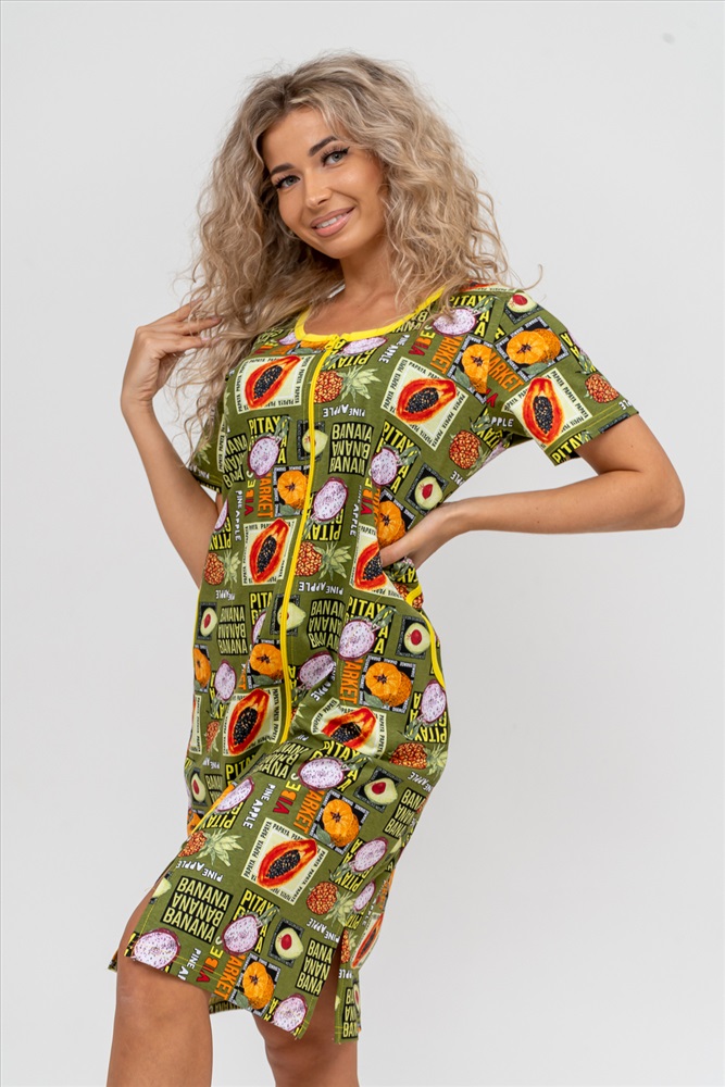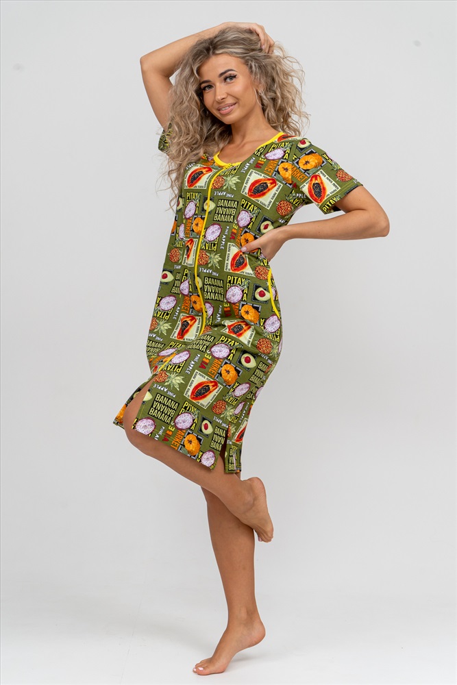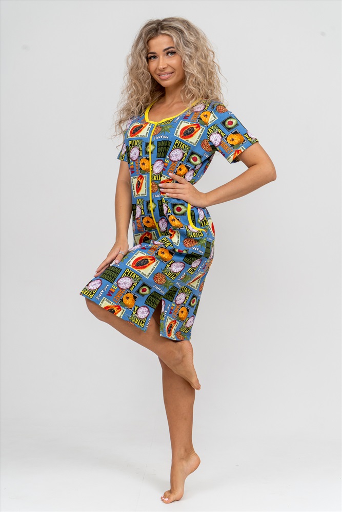 Состав: 100% хлопок Модель: Халат 37007 Тип товара: халат Материал: кулирка Бренд: Натали Суслова Назначение: для дома Сезонность: лето | осень | весна | зима Стиль: домашний Модный женственный халатик выполнен из 100% хлопчатобумажной ткани, что обеспечивает максимальный комфорт при ношении. Отличается мягкостью и приятной на ощупь текстурой. Материал прекрасно дышит. Носить такой халатик Вы сможете как летом, так и в любой другой сезон. Надёжный замок на молнии сохраняет свои свойства в течении всего времени использования. Женственный вырез и 2 боковых кармана добавляют образу шарм и делают изделие удобным и практичным. Изысканный халатик подойдёт для любого типа фигуры. Отличная модель для дома, для роддома, после родов, для кухонных дел и хозяйственной уборки, для дачи. И конечно идеально после душа, сауны, бани и ванной. А так же будет замечательным подарком на любой праздник: 14 февраля, день рождения, 8 марта. Рекомендуется стирать в деликатном режиме 30 С. Это поможет избежать деформации и сохранить яркость цвета. Таблица размеров и веса