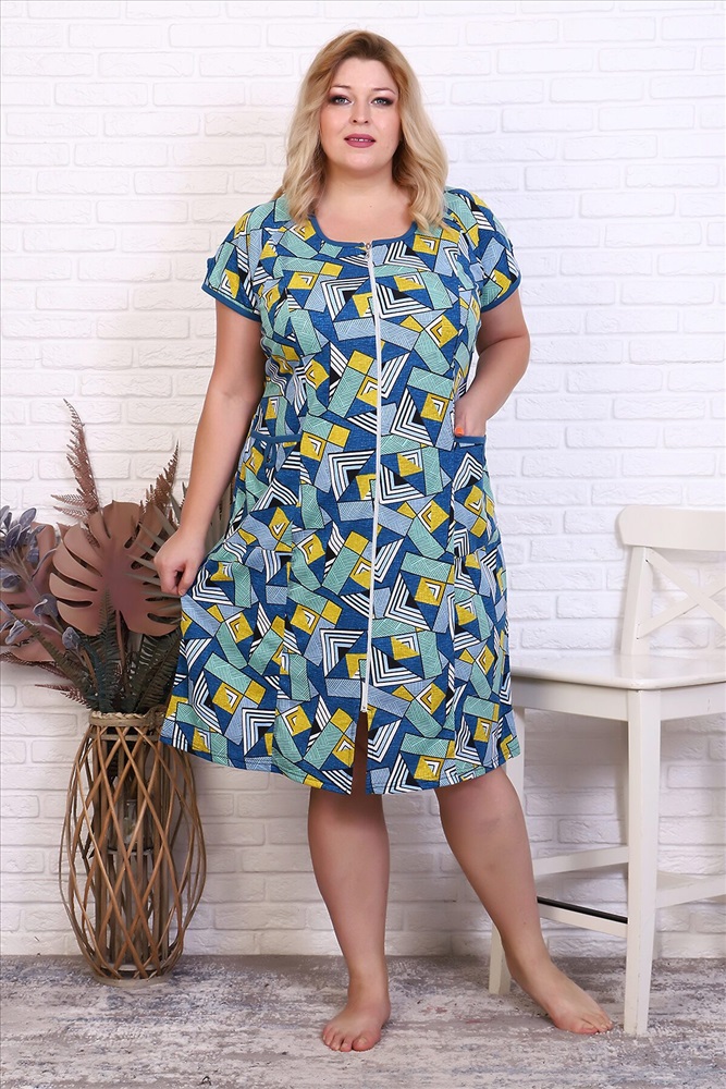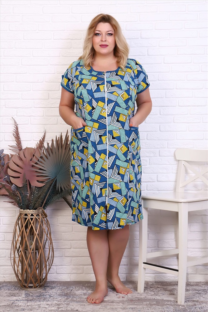 Страна производства: Россия БОЛЬШИЕ РАЗМЕРЫ! Халат женский на молнии, прямого силуэта, рукав реглан, карман накладной. Ткань 100% хлопок.