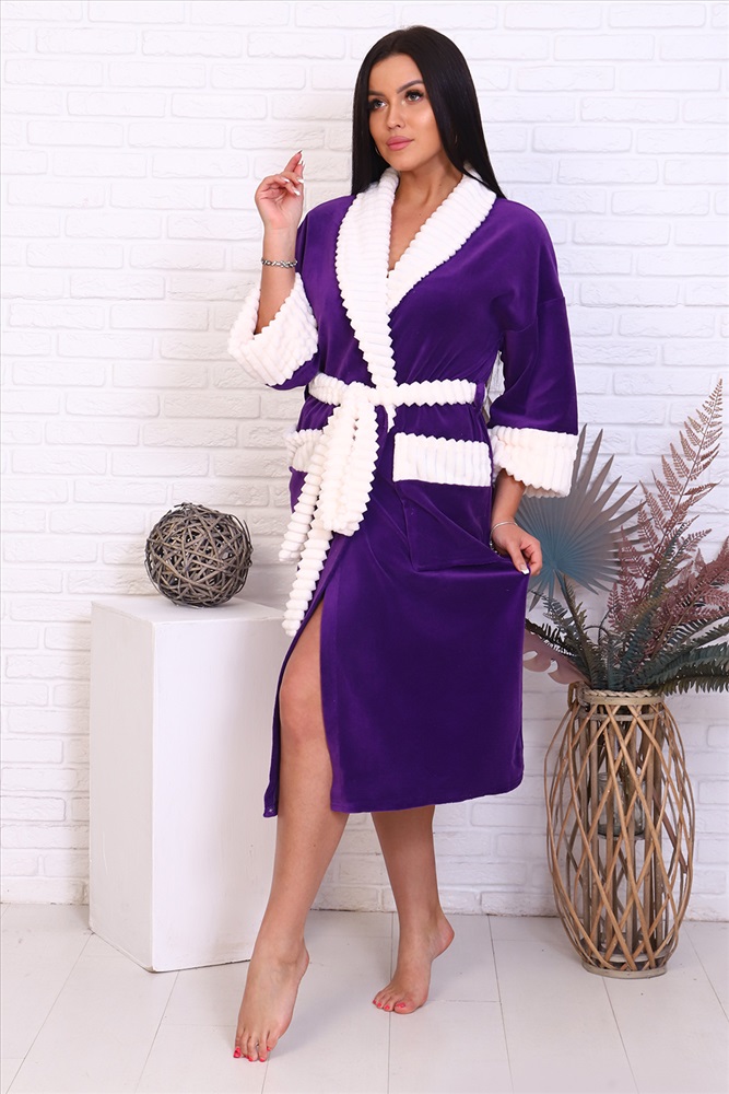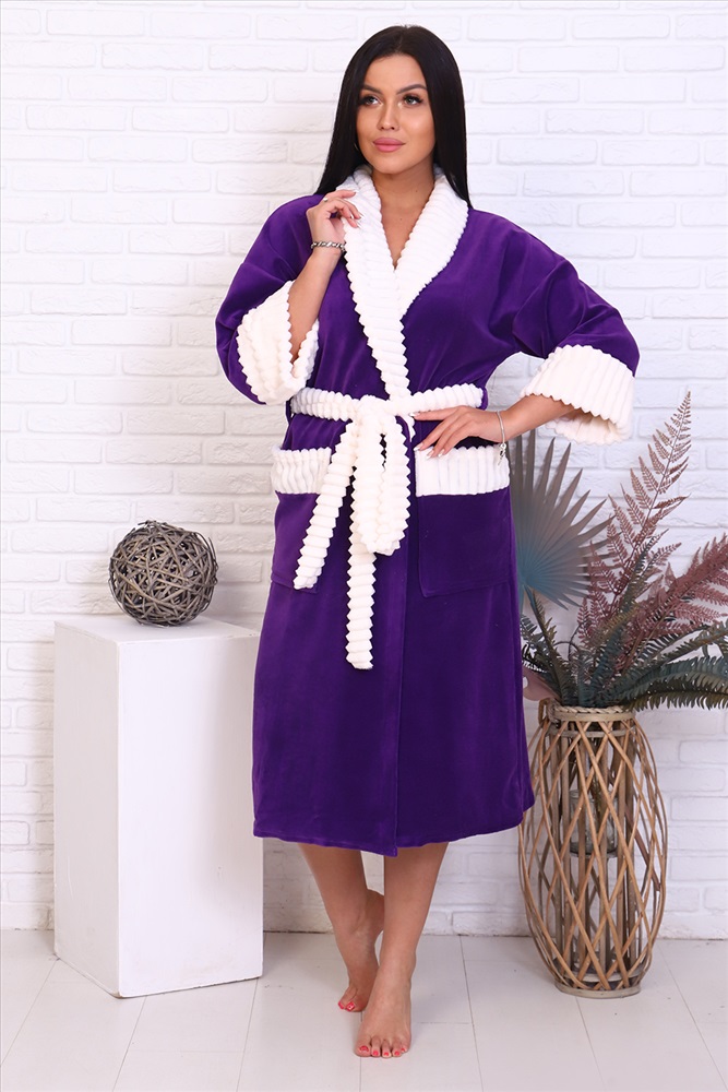 Состав: 100% п/э Модель: Халат 39009 Тип товара: халат Материал: велюр | велюр Бренд: Натали Суслова Длина: средняя длина Карман: накладные Назначение: для дома НДС: Без НДС Отделка: с карманами | с манжетами | с поясом Рисунок: колорблок Рукав: рукав 7/8 Сезонность: лето | осень | весна | зима Силуэт: прямой Стиль: домашний Воротник: воротник шалька Застежка: на запах | пояс Очень теплый и уютный халат из качественного велюра. По бокам накладные карманы, общая длина приблизительно ниже коленей, воротник, пояс и манжеты рукавов из контрастной ткани молочного цвета Таблица размеров и веса