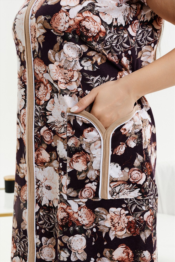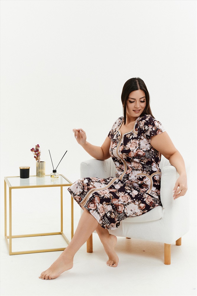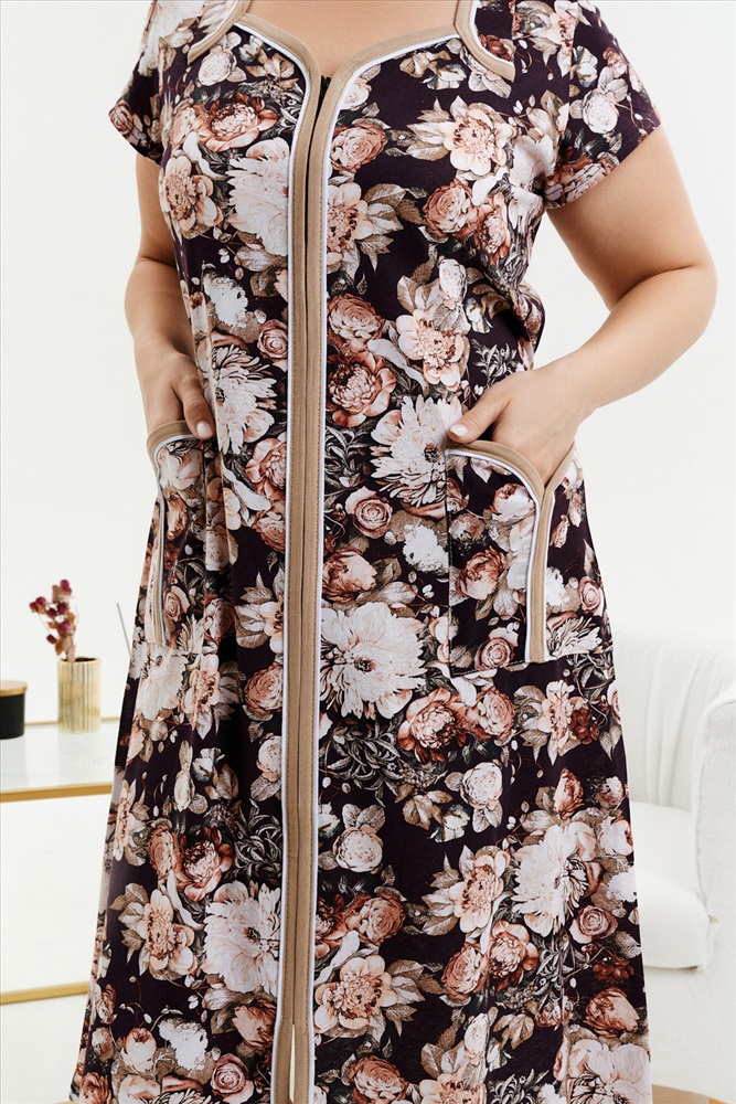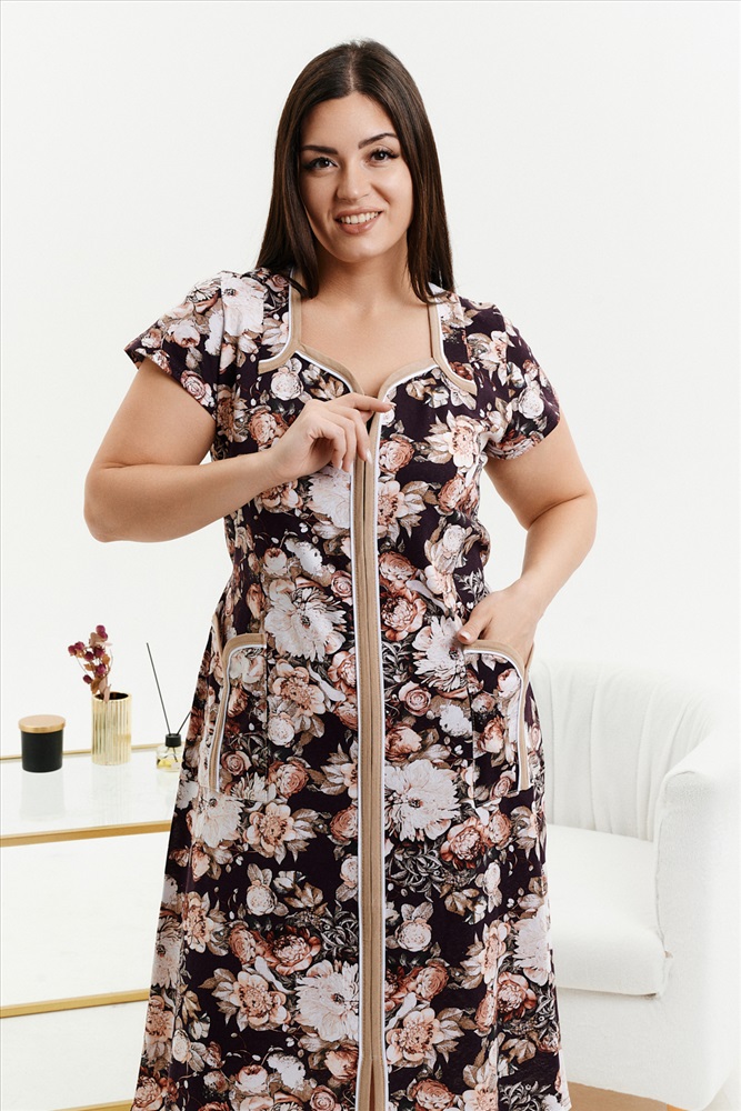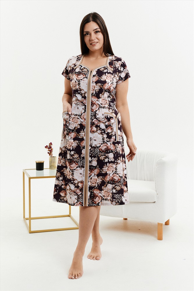 Состав: 100% хлопок Модель: Халат 39019 Тип товара: халат Материал: кулирка | кулирка Бренд: Натали Суслова Длина: средняя длина Карман: боковые | накладные Назначение: для дачи | для дома НДС: Без НДС Отделка: с карманами Рисунок: цветы Рукав: короткий рукав Сезонность: осень | весна | зима Силуэт: прямой Стиль: домашний Воротник: без воротника Застежка: молния Женский халат на молнии из кулирки с коротким рукавом, длиной ниже колена, с накладными карманами, в боковых швах два полупояса. Имеется возможность приобрести данный товар по розничной цене. Таблица размеров и веса