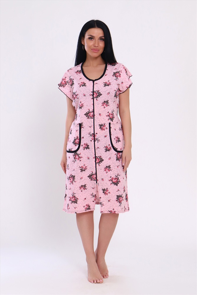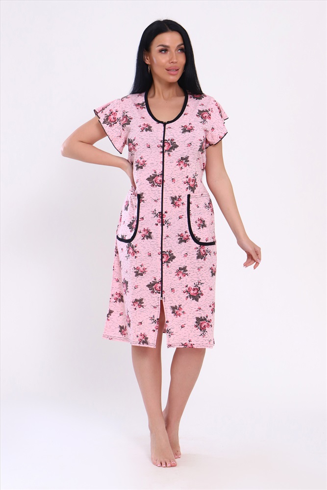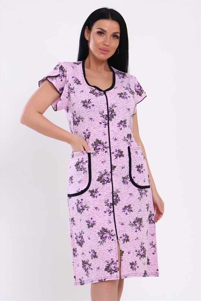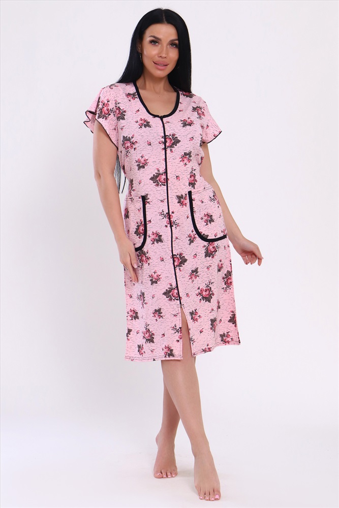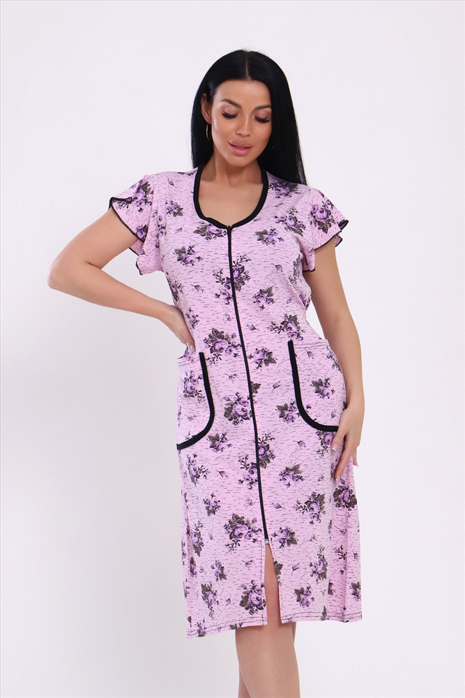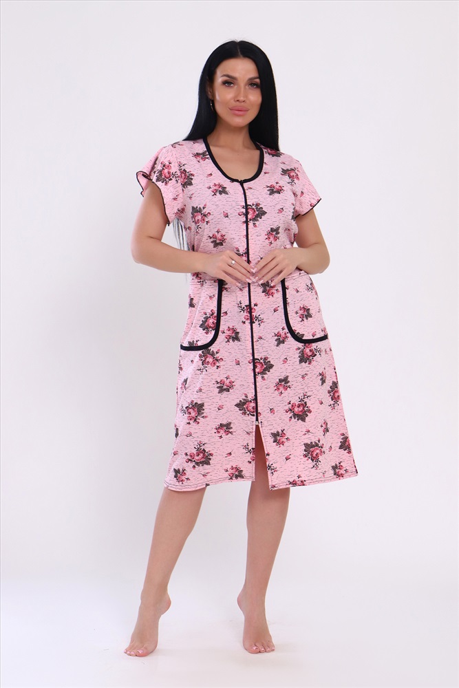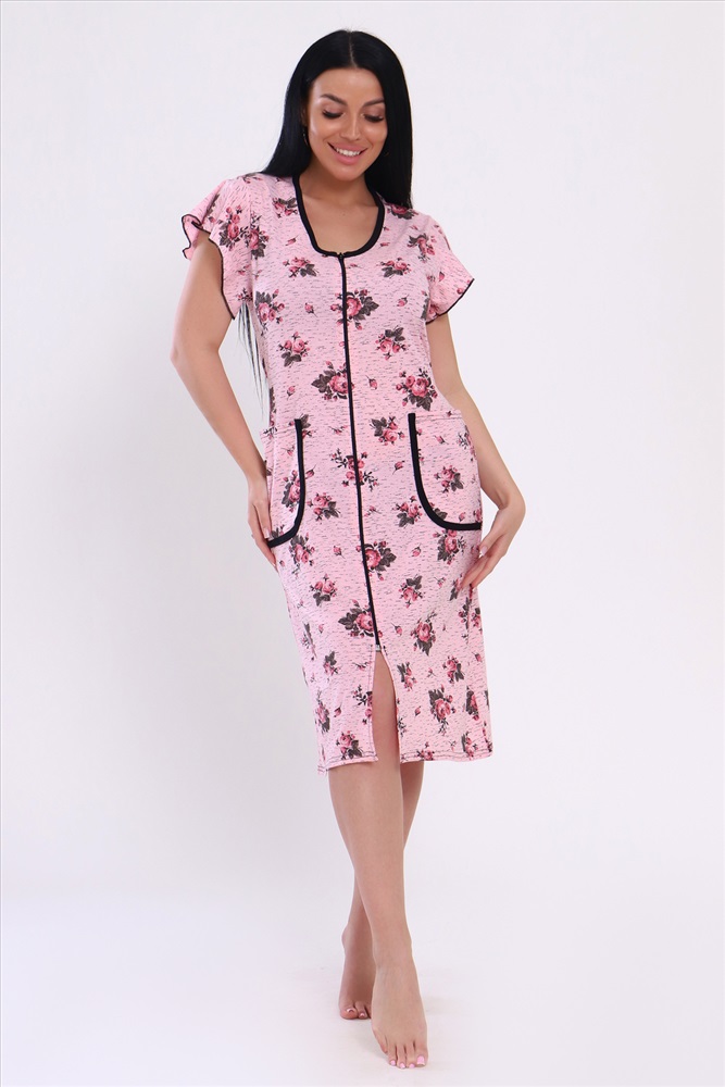 Состав: 60% ХБ 40% ПОЛИЭСТЕР Модель: Халат 39040 Тип товара: халат Материал: кулирка | кулирка Бренд: Натали Суслова Длина: средняя длина Карман: накладные Назначение: для дачи | для дома НДС: Без НДС Отделка: с карманами | с поясом Рисунок: цветы Рукав: короткий рукав Сезонность: лето | осень | весна Силуэт: полуприлегающий Стиль: домашний Воротник: без воротника Застежка: молния Оригинальный женский халат с красивым принтом на ткани. Рукав короткий, с накладными карманами, круглой воротник. Застежка-молния, длина ниже колена, очень приятный к телу. Таблица размеров и веса