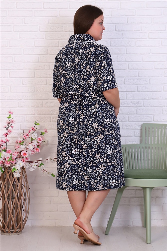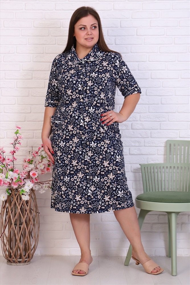 ID товара: 765489 Состав: 100% Хлопок Сезон: Демисезон Длина: Ниже колена Фасон: Полуприлегающий Рукав: Ниже локтя Вид застежки: Пуговицы Декоративные элементы: Принт Основная ткань: Хлопок | Кулирка Стиль: Повседневный Страна бренда: Россия Страна производства: Россия Халат женский на пуговицах, с отложным воротником, накладными карманами. Изготовлен из натурального хлопка. Длина изделия ниже колена, свободный покрой обеспечит вам удобство и не стеснит ваших движений. На спинке халата есть 2 полупояса, которые регулируют объем в талии. В такой модели будет удобно женщине любого возраста. На модели 52 размер Комментарии к товару