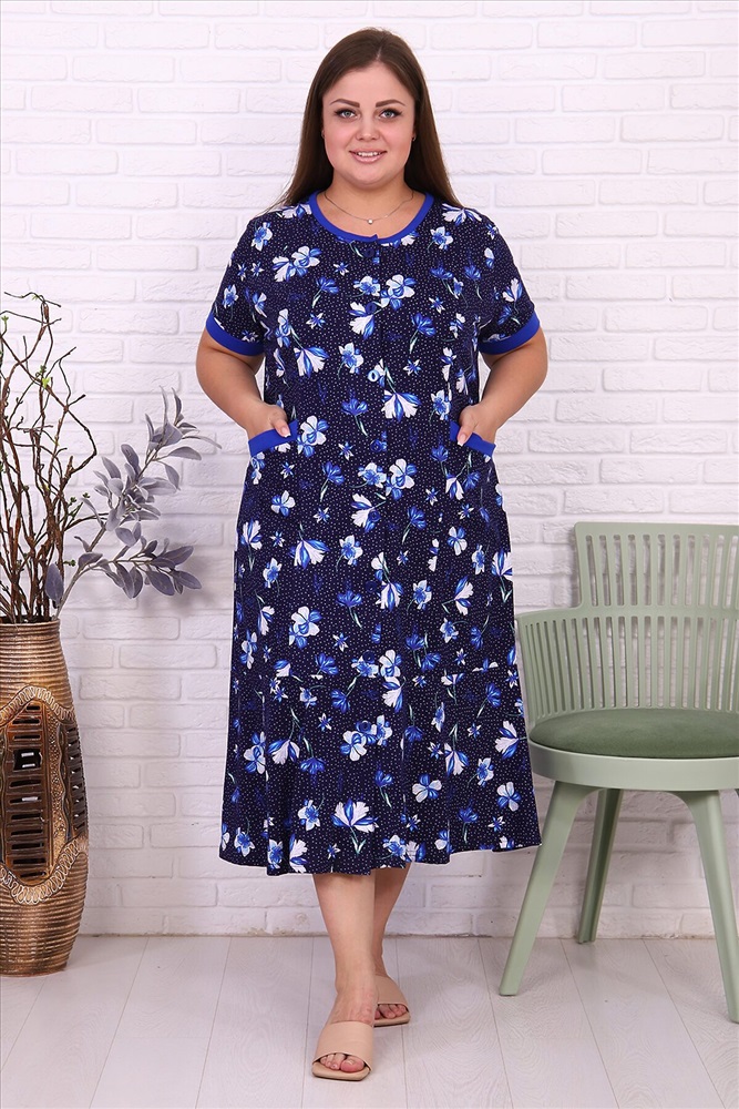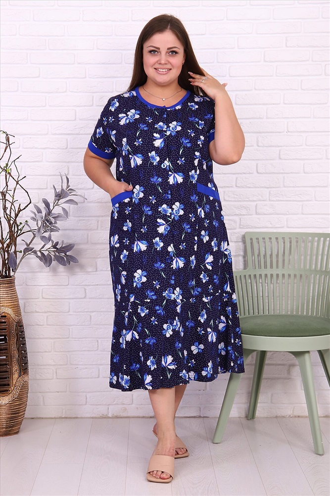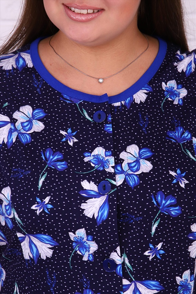 ID товара: 898252 Состав: 100% Хлопок Сезон: Весна/Лето Длина: Ниже колена Фасон: Свободный крой Рукав: Короткий Вид застежки: Пуговицы Основная ткань: Хлопок Стиль: Повседневный Вид ткани: Кулирка Страна бренда: Россия Страна производства: Россия Халат женский на пуговицах, с накладными карманами. Изготовлен из натурального хлопка. Длина изделия ниже колена, свободный покрой обеспечит вам удобство и не стеснит ваших движений. На спинке халата есть 2 полупояса, которые регулируют объем талии. Нежная расцветка создаст женственный образ, в такой модели будет удобно женщине любого возраста. Комментарии к товару
