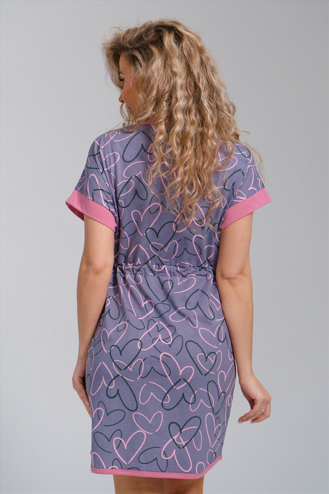 Состав: 100% хлопок Модель: Халат 53020 Тип товара: халат Материал: кулирка | кулирка Бренд: Натали Суслова Карман: боковые Назначение: для дома НДС: 22% Отделка: с карманами | с поясом | со шнурком Рисунок: сердечки Рукав: короткий рукав Сезонность: лето | осень | весна | зима Силуэт: полуприлегающий Стиль: домашний Воротник: без воротника Застежка: молния Женский трикотажный халат на молнии без сомнения станет самой желанной и любимой вещью в гардеробе любой дамы. Халатик укороченный, на кулисе со шнурком, с удобными карманами и молнией. Выглядит стильно и современно. Халатик такого плана подходит для фигур разного типа. Легкий и мягкий, качественный, дышащий, сшит из высококачественного трикотажа, подарит вам абсолютную непринужденность и легкость, простор в движении, идеально подойдет для беременных и кормящих и будет хорошим сопровождением в роддом и не вызовет раздражения, так как создан из натуральной ткани. Благодаря этому может стать прекрасным подарком для, мамы, подруги, бабушки, сестры или коллеги на любой праздник. Отлично сядет на женщин больших размеров. Данная модель будет кстати для отдыха на даче и даже поездки к морю. Домашняя одежда российского производства, имеет комфортную посадку, не линяет, не дает усадку после стирки и долго сохраняет первоначальный внешний вид. Халатик подчеркнет Ваш стиль и добавит молодежных нот в ваш образ, а затягивающийся пояс на талии придаст женственности и изящества вашему луку . Стирайте изделия из хлопка на бережном режиме с температурой не выше 30С, чтобы сохранить цвет, форму и фактуру материала. Приобретая наши изделия, радуйте себя и своих близких. Ориентируясь по таблице замеров, обратите внимание, что замеры длины рукава проводились от точки основания шеи. Таблица размеров и веса