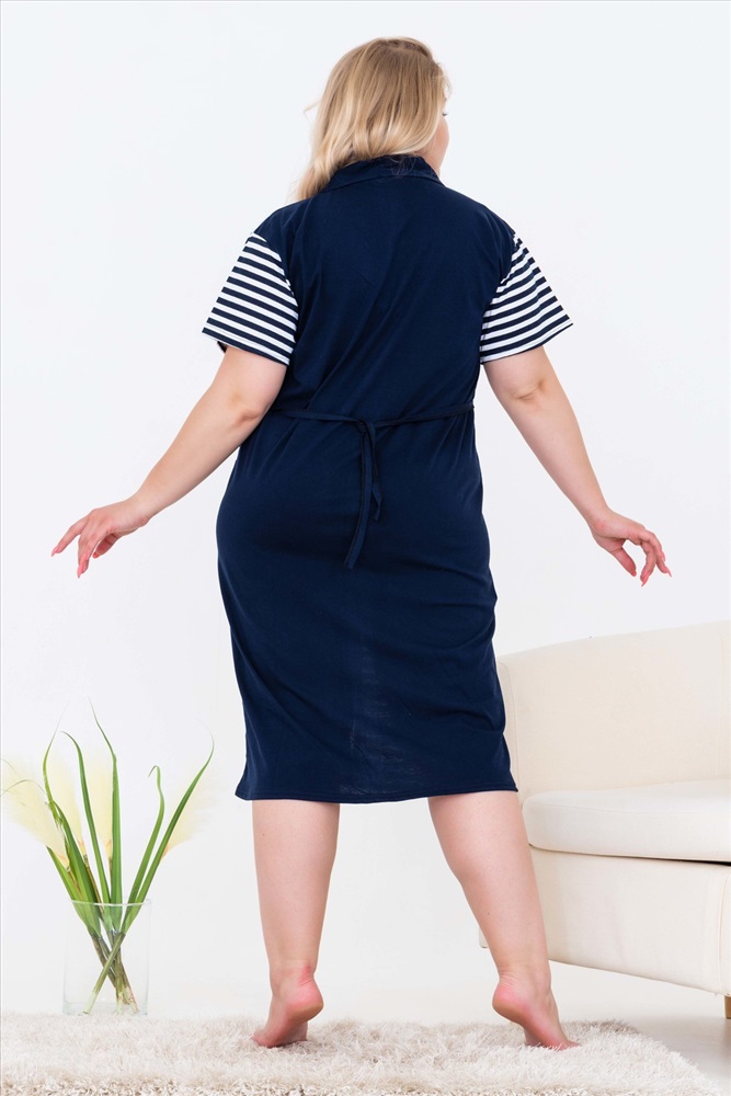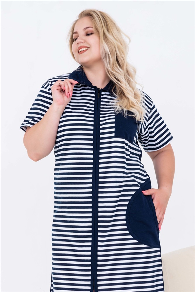 Состав: 100% хлопок Модель: Халат 53508 Тип товара: халат Материал: кулирка | кулирка Бренд: Натали Суслова Длина: средняя длина Карман: боковые | накладные Назначение: для дома НДС: Без НДС Отделка: с карманами Рисунок: полоска Рукав: короткий рукав Сезонность: лето | осень | весна | зима Силуэт: полуприлегающий Стиль: домашний Воротник: отложной воротник Застежка: молния Халат женский на молнии, прямого силуэта. Спереди на полочке два кармана, короткий рукав, воротник как у рубашки. Длина халата ниже колена, ткань 100%хлопок. Эта модель подойдёт и женщинам и девушкам. Таблица размеров и веса