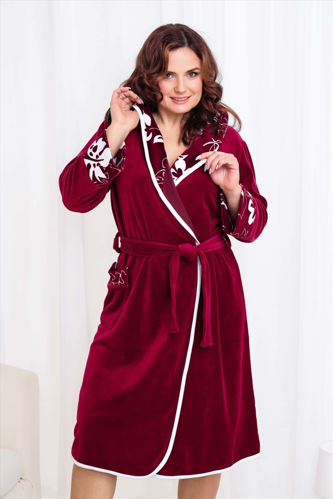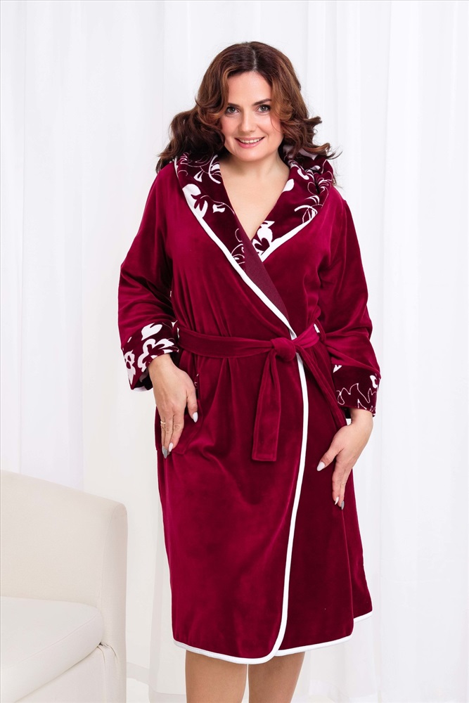 Застежка: на запах | пояс Халат женский на запах из велюра, длиной ниже колена, с капюшоном и накладным карманом, рукав с манжетами. Классическая модель подходит как повседневный вариант домашней одежды. Мягкий, удобный и практичный.