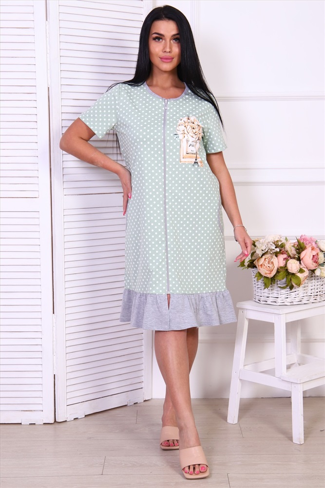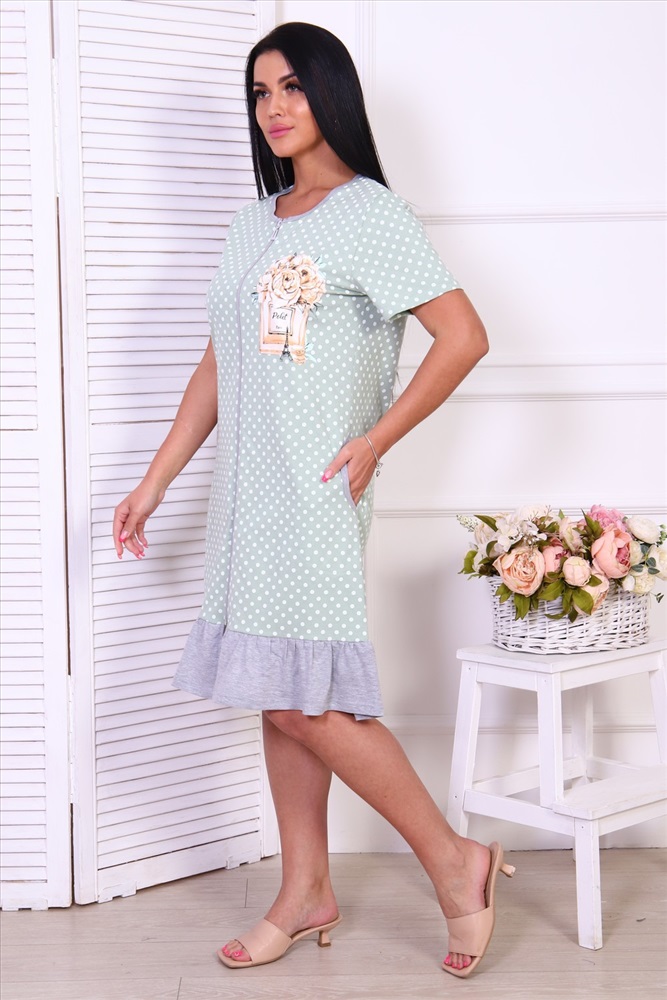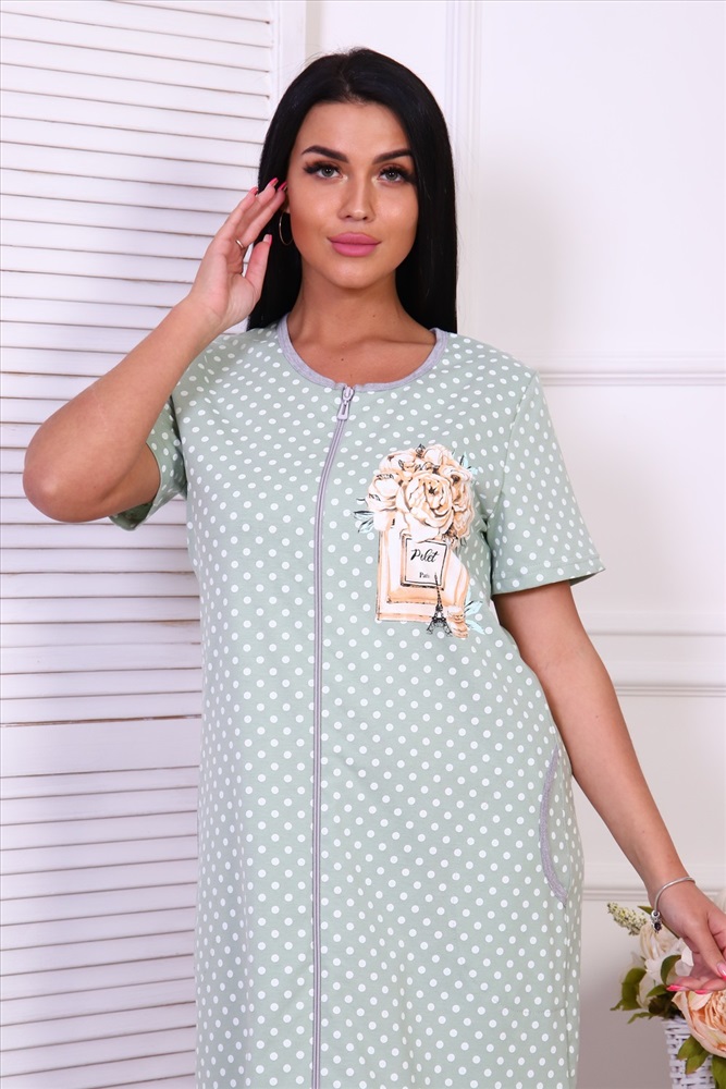 Состав: хлопок 100% Модель: Халат 57014 Тип товара: халат Материал: кулирка | кулирка Бренд: Натали Суслова Длина: средняя длина Карман: боковые Назначение: для дома НДС: 5% Отделка: с карманами | с воланами Рисунок: горошек Рукав: короткий рукав Сезонность: лето | весна Силуэт: полуприлегающий Стиль: домашний Воротник: без воротника Застежка: молния Халат в горошек на молнии, с боковыми карманами с принтом на левой полочке. Таблица размеров и веса