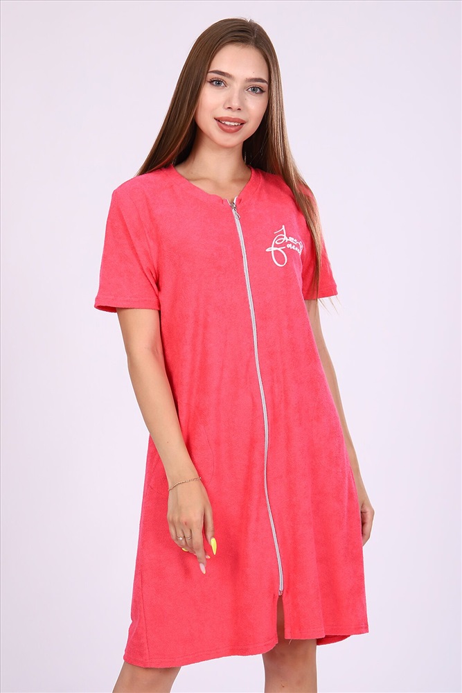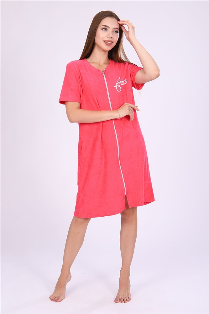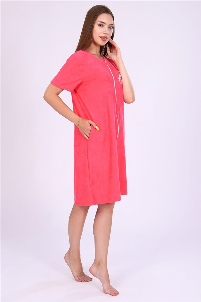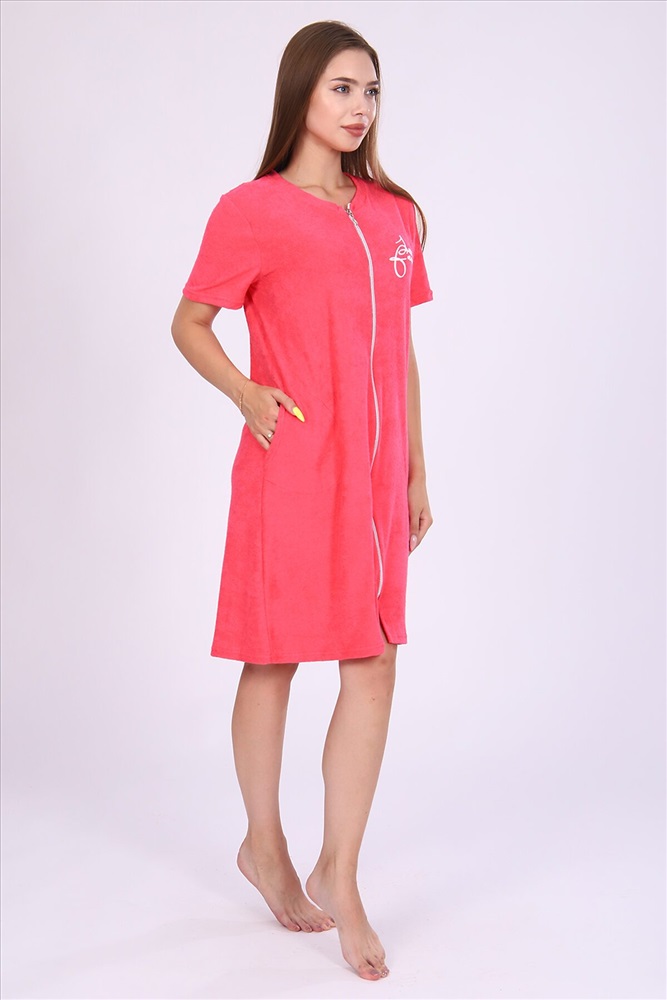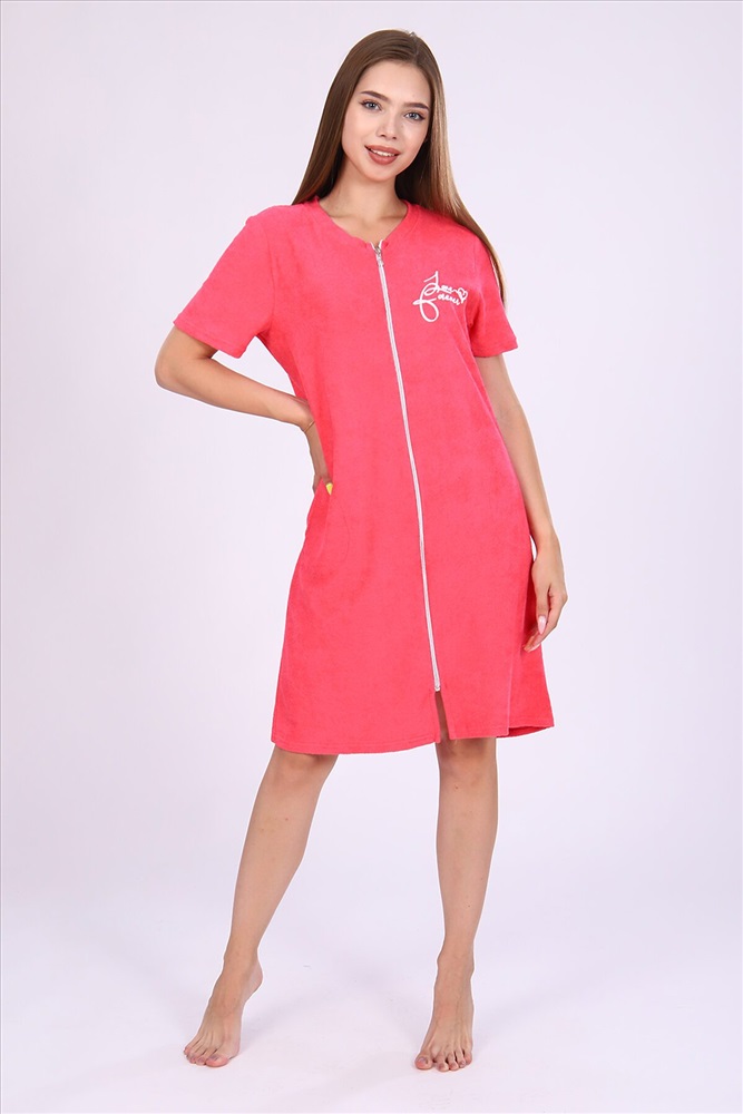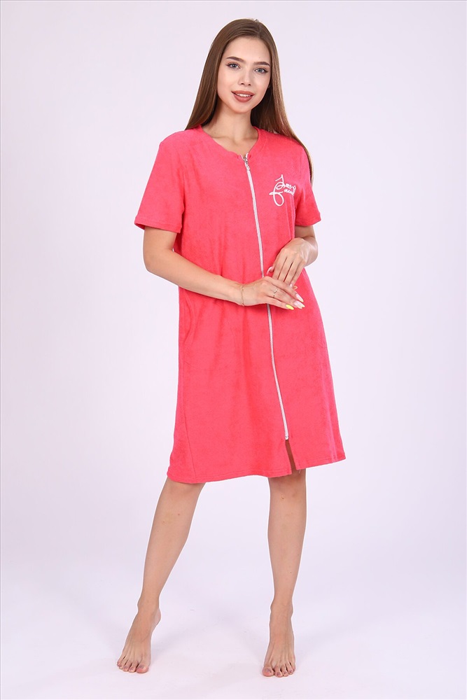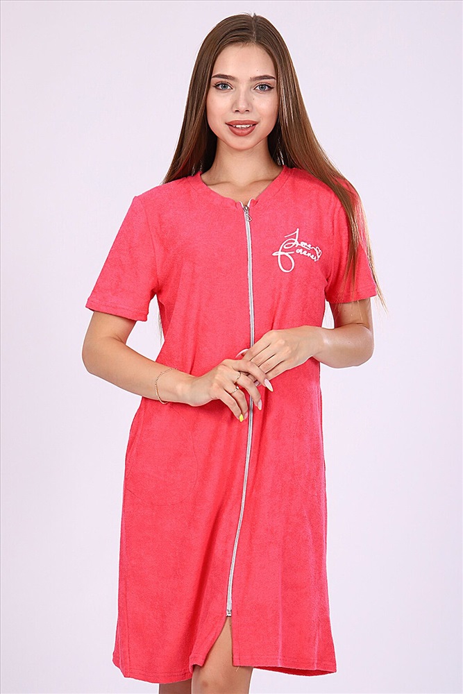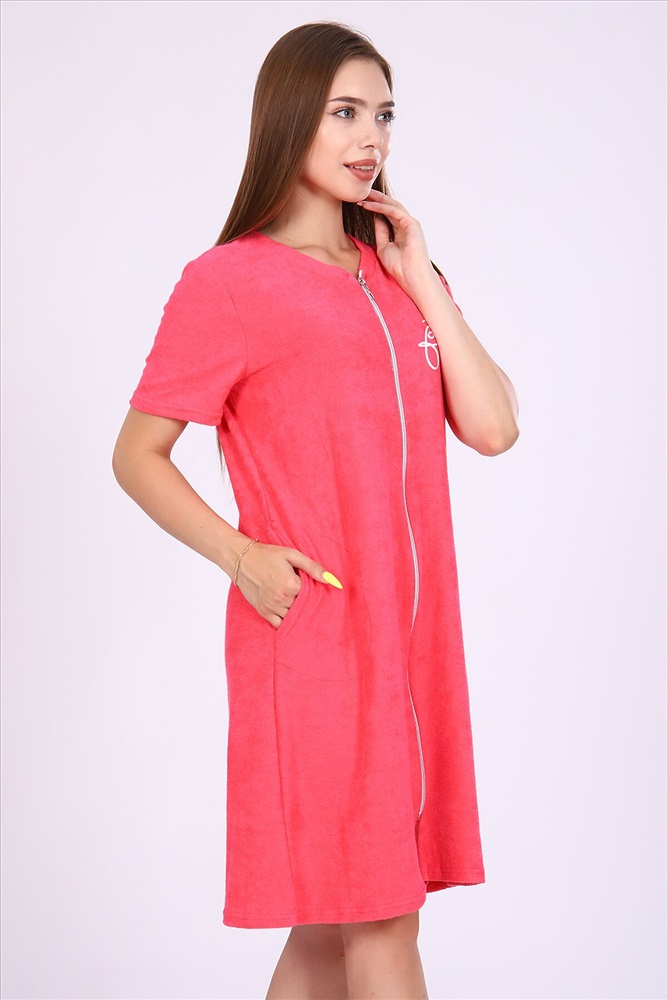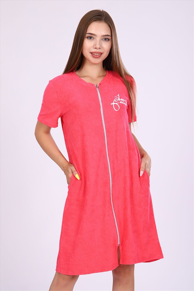 ID товара: 801128 Состав: 100% Хлопок Сезон: Демисезон Длина: До колена Фасон: Прямой Рукав: Короткие Вид застежки: Молния Декоративные элементы: Карманы накладные Основная ткань: Хлопок | Махра Стиль: Повседневный Страна бренда: Россия Страна производства: Россия Домашний женский махровый халат на молнии. Это уютный вариант повседневной домашней одежды. Выглядит стильно и современно, как домашнее платье. Оптимальной длины до колена. Ткань отлично впитывает влагу и позволяет коже дышать. Комментарии к товару
