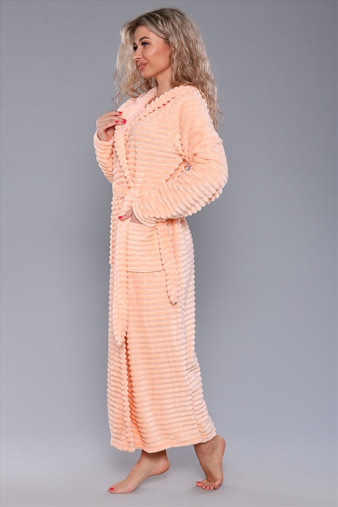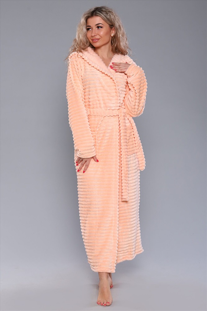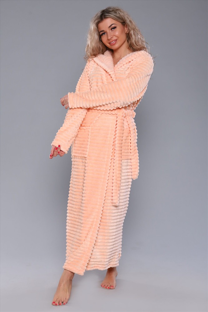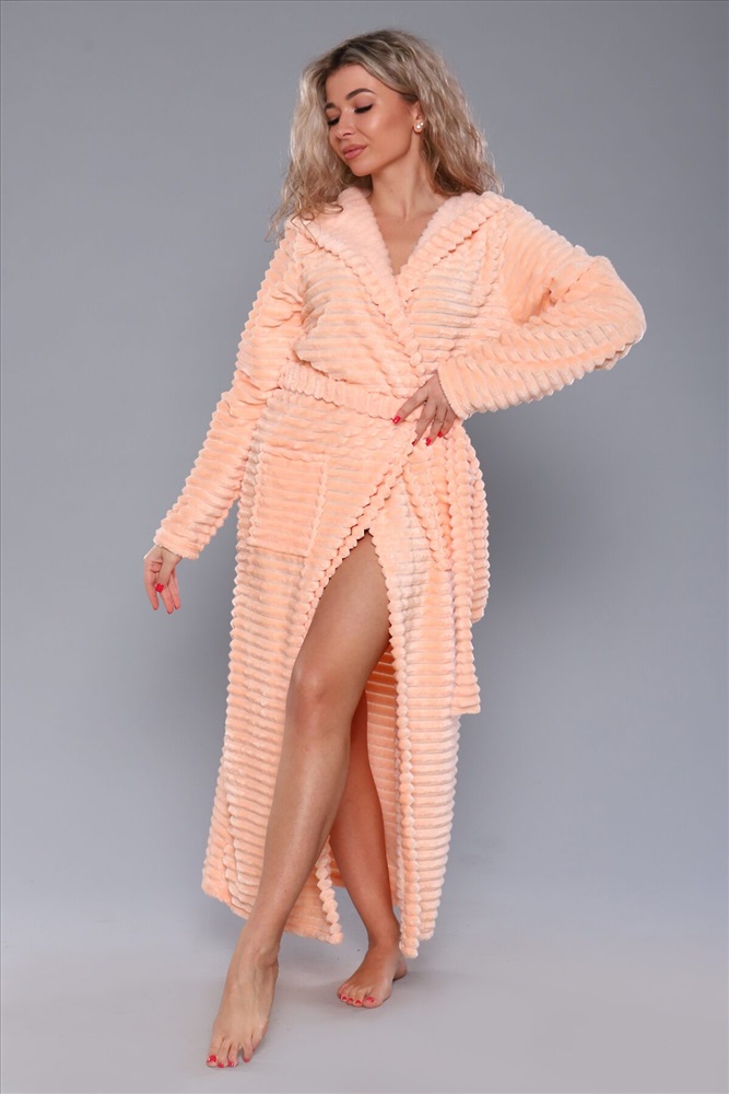 Женский домашний халат мягкий и уютный. Сшит из самого нежного велсофта, Материал хорошо сохраняет тепло, воздухопроницаемый, износоустойчив, Женские халаты из этого материала получаются невероятно комфортными, тёплыми и уютными. Данная модель халата имеет два вместительных кармана, удобный пояс и объёмный капюшон. Длина изделия Макси