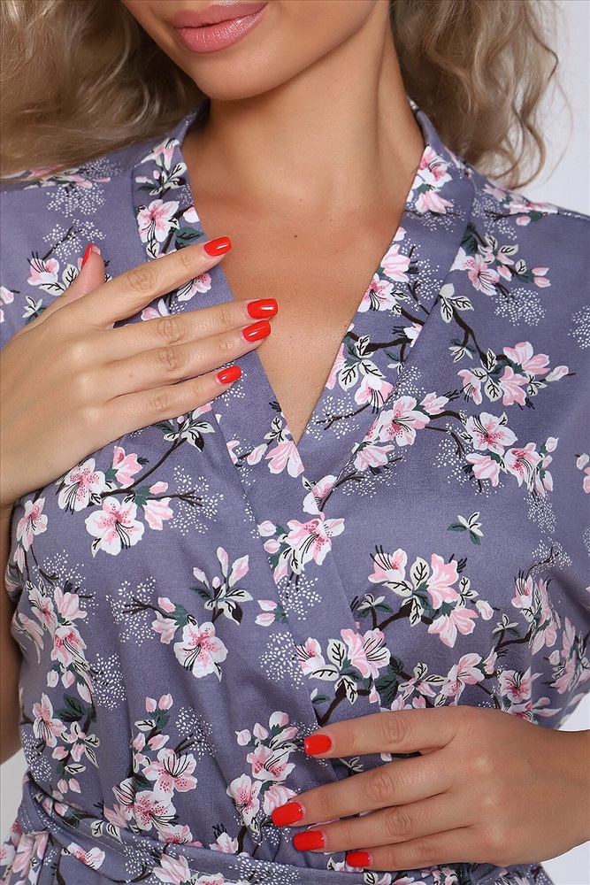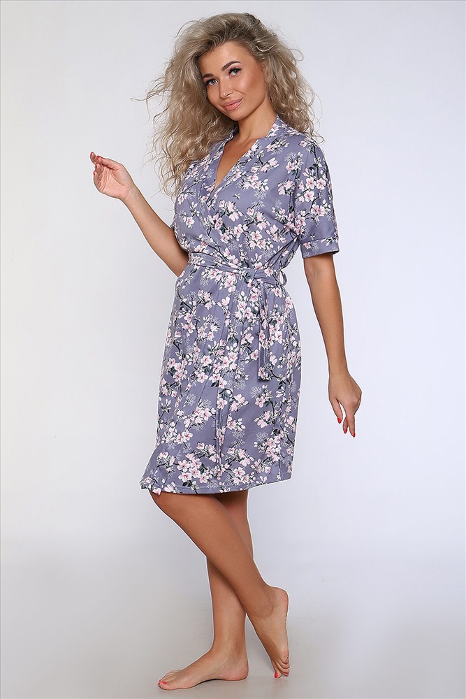 ID товара: 909392 Состав: 100% Хлопок Сезон: Демисезон Длина: До колена Фасон: Свободный крой Рукав: короткие Вид застежки: С запахом Декоративные элементы: Принт Основная ткань: Хлопок Вид ткани: Кулирка Страна бренда: Россия Страна производства: Россия Халат запашной с поясом свободного силуэта. Рукава цельнокроеные с манжетами. Карманы в боковых швах. Комфортен для повседневной носки. Комментарии к товару
