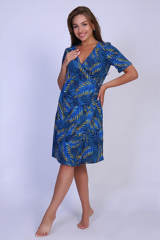 Страна производства: Россия Халат на запах с короткими рукавами и карманами в боковых швах. Неотъемлемый элемент домашнего гардероба.