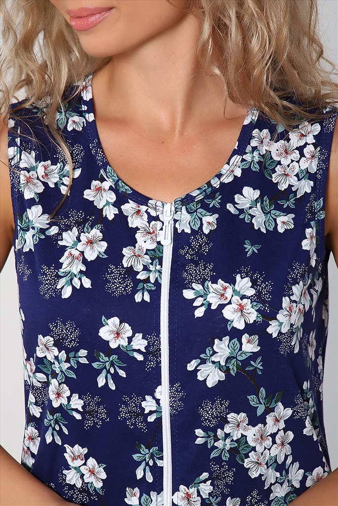 Страна производства: Россия Халат на молнии без рукавов. Отрезной волан от середины бедра. Два кармана в боковых швах. Неотъемлемый элемент домашнего гардероба.