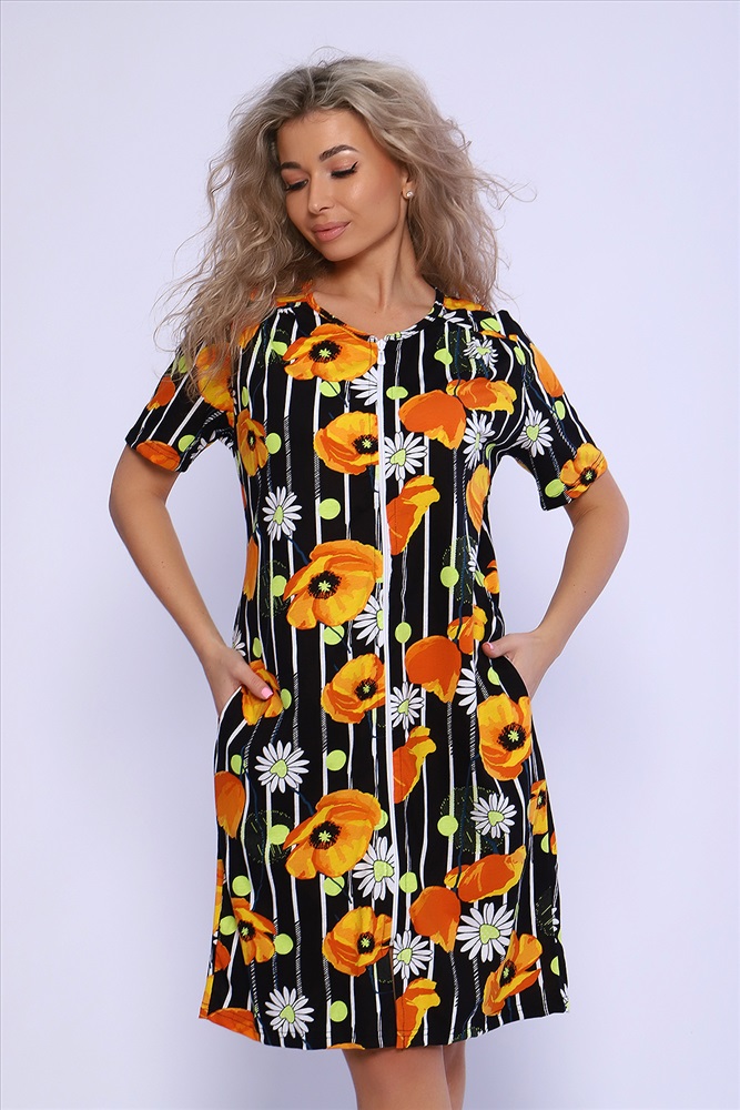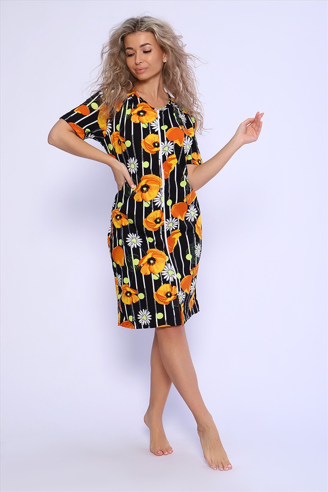 Состав: 100% хлопок Модель: Халат 59204 Тип товара: халат Материал: кулирка | кулирка Бренд: Натали Суслова Длина: средняя длина Карман: боковые Назначение: для дачи | для дома НДС: 5% Отделка: с карманами Рисунок: полоска | цветы Рукав: короткий рукав Сезонность: лето | осень | весна | зима Силуэт: свободный Стиль: домашний Воротник: без воротника Застежка: молния Халат на молнии свободного силуэта с короткими рукавами. Полочка и спинка на кокетках и со сборкой. Карманы в боковых швах. Комфортен для повседневной носки. Таблица размеров и веса