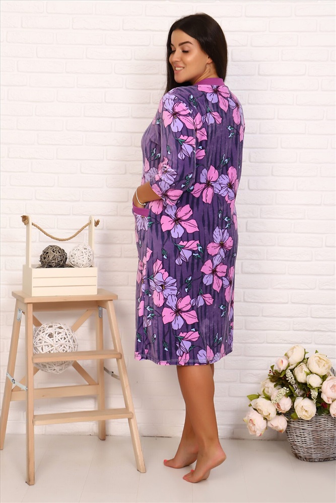 ID товара: 883064 Состав: 80% Хлопок, 20% Полиэстер Сезон: Весна/Лето Фасон: Свободный крой Рукав: 3/4 Вид застежки: Молния Основная ткань: Велюр Страна бренда: Россия Страна производства: Россия Халат женский из набивного велюра. Декоративная серебряная молния. Воротник и карманы - однотонная отделка. Длина рукава 3/4 Комментарии к товару