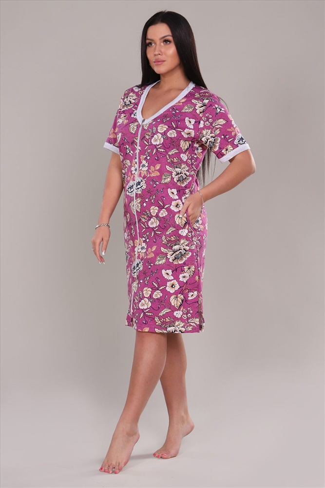 ID товара: 741961 Состав: Хлопок 100% Сезон: Демисезон Длина: прикрывает колено Фасон: Полуприлегающий Рукав: Короткие Вид застежки: Молния Декоративные элементы: Принт Основная ткань: Хлопок | Кулирка Стиль: Повседневный Страна бренда: Россия Страна производства: Россия Халат женский оригинальной и очень красивой расцветки выполнен из ткани хлопок. Горловина и рукав обработаны широким кантом контрастного цвета. Халат на молнии, по бокам разрезы. Модель очень легкая, приятная к телу, подойдет для дома и отдыха. Комментарии к товару