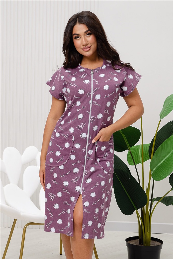 ID товара: 909618 Состав: 100% Хлопок Сезон: Демисезон Длина: Ниже колена Фасон: Полуприлегающий Рукав: короткие Вид застежки: Молния Декоративные элементы: Принт Основная ткань: Хлопок Вид ткани: Кулирка Страна бренда: Россия Страна производства: Россия Халат женский на молнии оригинальной расцветки со спущенным рукавом выполнен из кулирки 100% хлопок. Карман имеет закругленную форму, окантован, как и горловина, узким кантом из основной ткани, рукав подшит. Халат идеально подойдет для повседневной носки и отдыха. Комментарии к товару