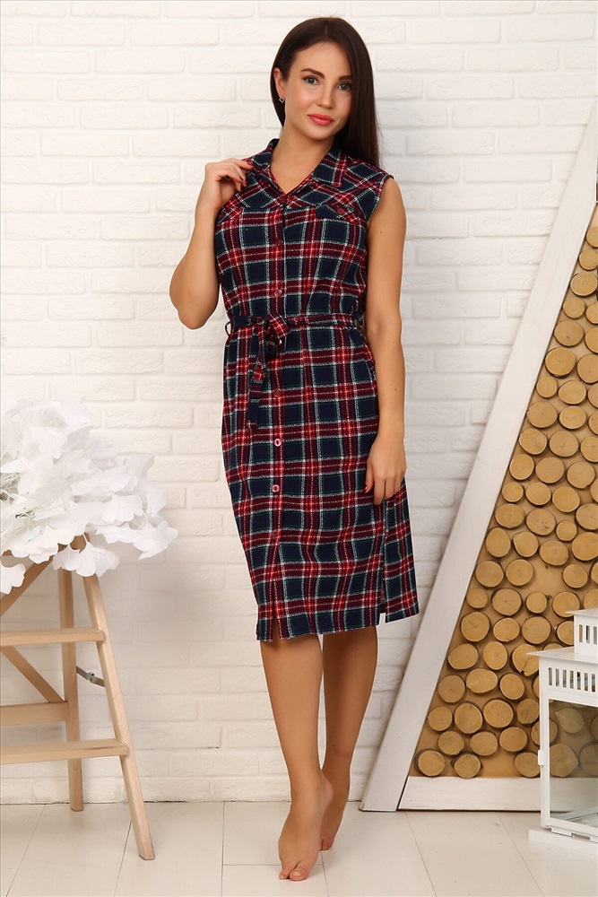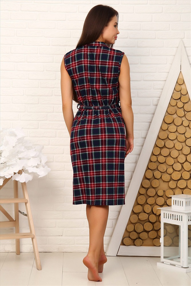 Халат без рукава на пуговицах, с воротником, лацканами и поясом, карманы в боковых швах