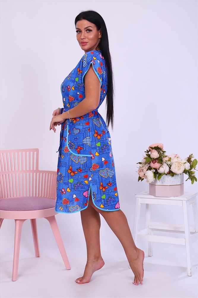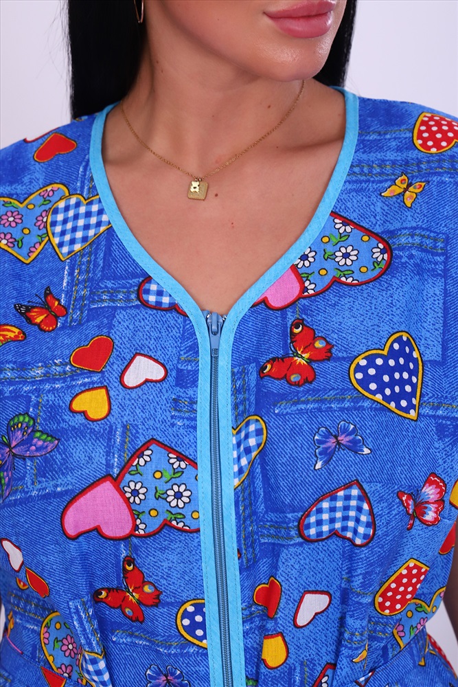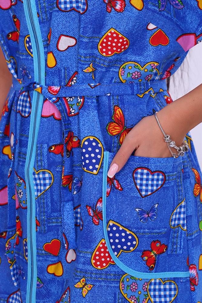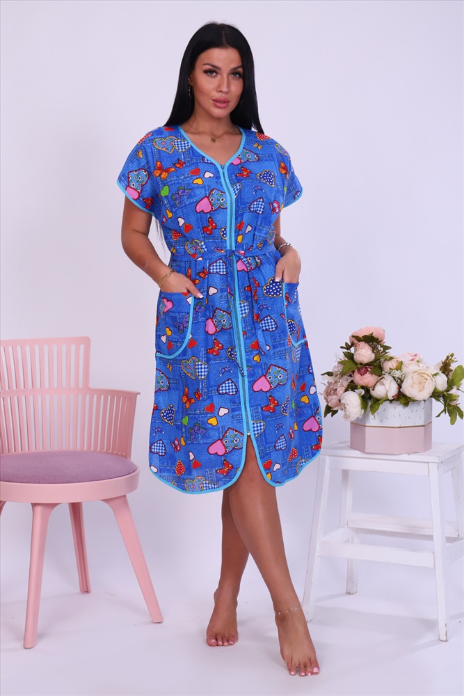 Состав: Хлопок 100% Модель: Халат 73003 Тип товара: халат Материал: бязь | бязь Бренд: Натали Суслова Длина: средняя длина Карман: накладные Назначение: для дачи | для дома НДС: Без НДС Отделка: с карманами | с поясом Рейтинг: Рейтинг 4 и выше Рисунок: сердечки Рукав: короткий рукав Сезонность: лето | осень | весна | зима Силуэт: прямой Стиль: домашний Воротник: без воротника Застежка: молния Женский бязевый халат - туника на молнии. С цельнокроеным коротким рукавом, прямого силуэта, накладные карманы. Окантовка бязь. Халат удобен и подходит женщинам любого возраста. Стирка при 30С. Таблица размеров и веса