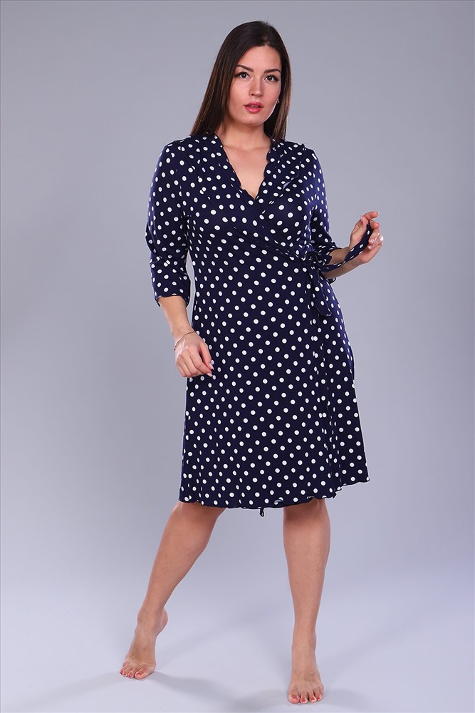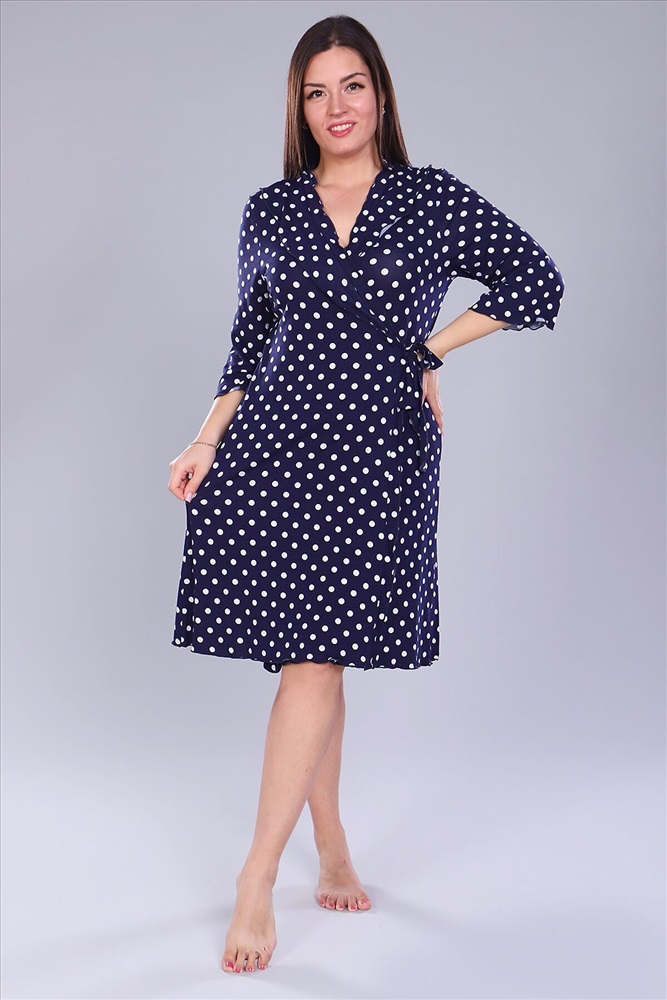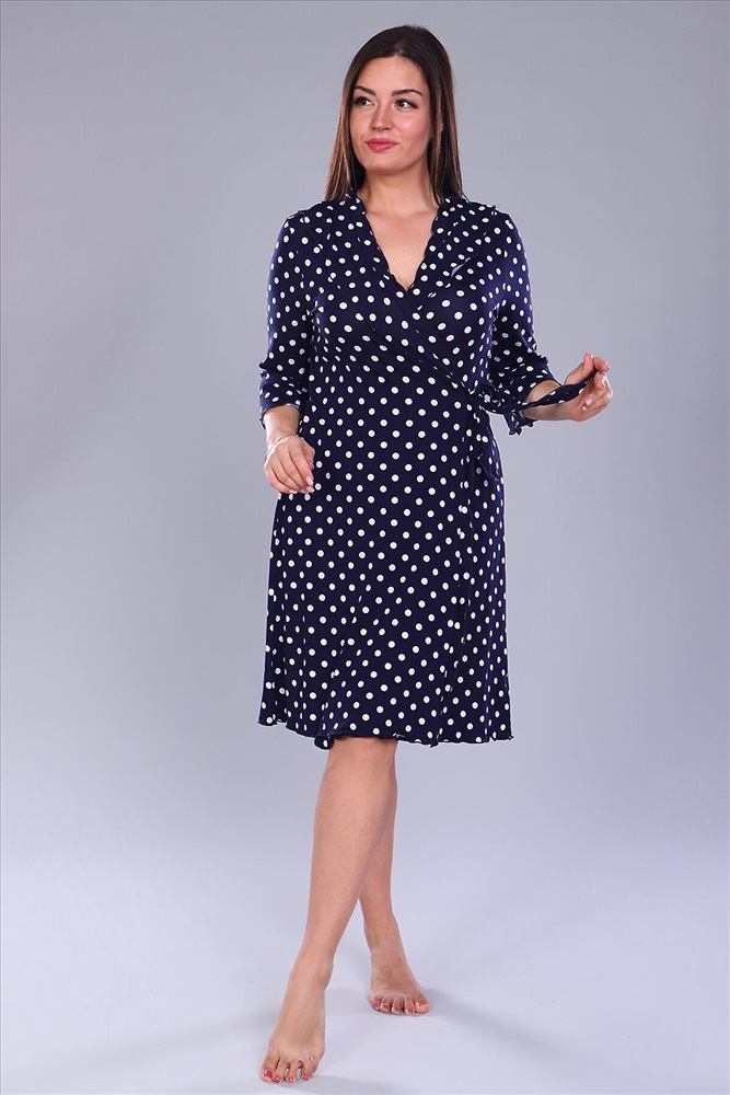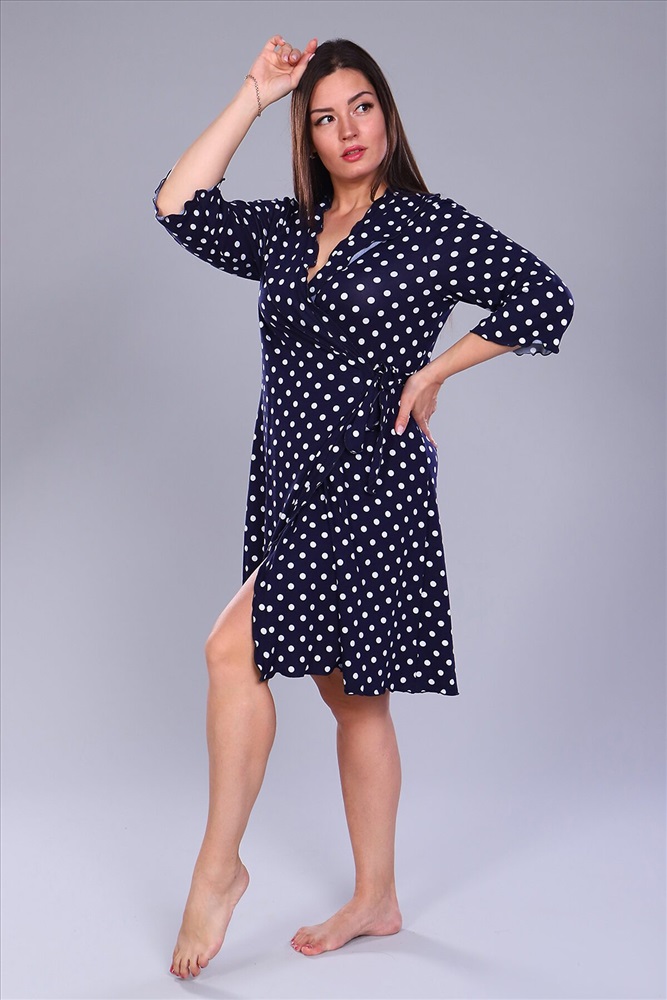 ID товара: 817094 Состав: 95% Вискоза, 5% Лайкра Сезон: Демисезон Длина: прикрывает колено Фасон: Полуприлегающий Рукав: 3/4 Вид застежки: С запахом Декоративные элементы: Принт Основная ткань: Вискоза Стиль: Повседневный Страна бренда: Россия Страна производства: Россия Халат из вискозы на запах, рукав чуть расклешенный 3\4,длина до колена, по груди рюши. Очень приятный к телу. Комментарии к товару