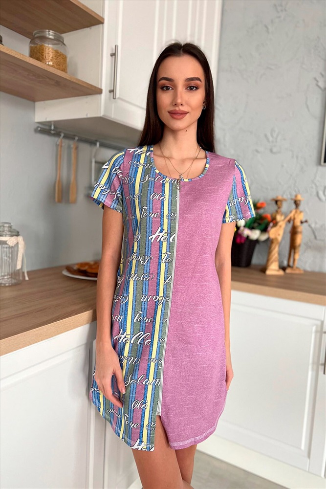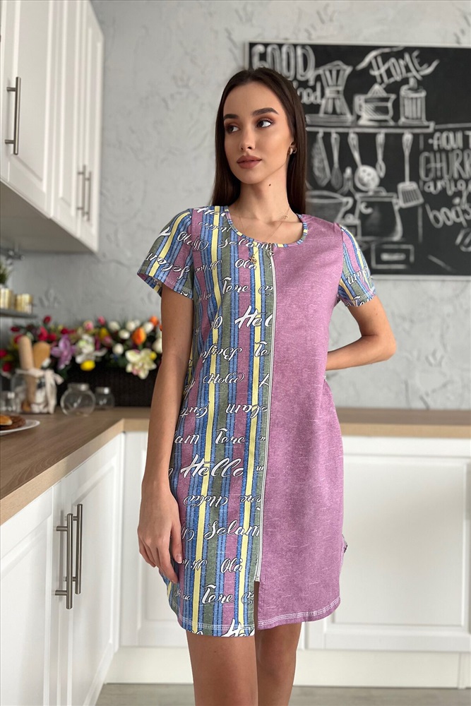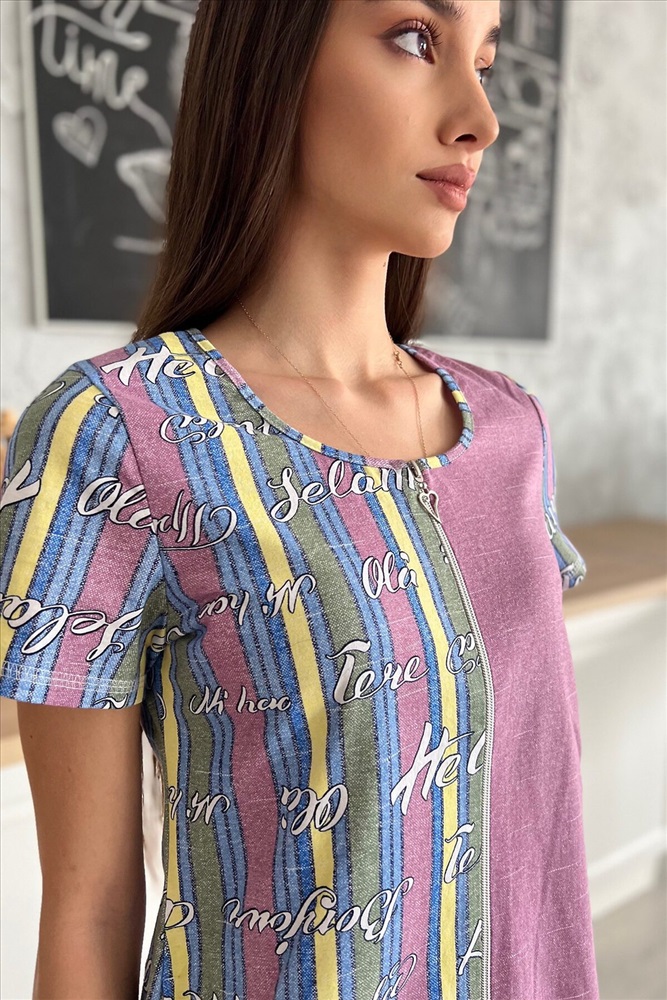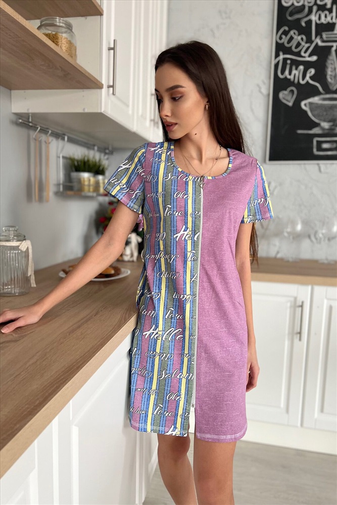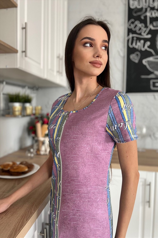 ID товара: 765044 Состав: 100% Хлопок Сезон: Демисезон Длина: Мини Фасон: Полуприлегающий Рукав: Короткие Вид застежки: Молния Декоративные элементы: Принт Основная ткань: Хлопок | Кулирка Стиль: Повседневный Страна бренда: Россия Страна производства: Россия Халат на молнии, полуприлегающего силуэта, длиной выше колена, с округлой горловиной, с карманами в боковом шве, с фигурной линией низа. Рукав втачной, короткий. Горловина обработана бейкой из основного полотна. Комментарии к товару